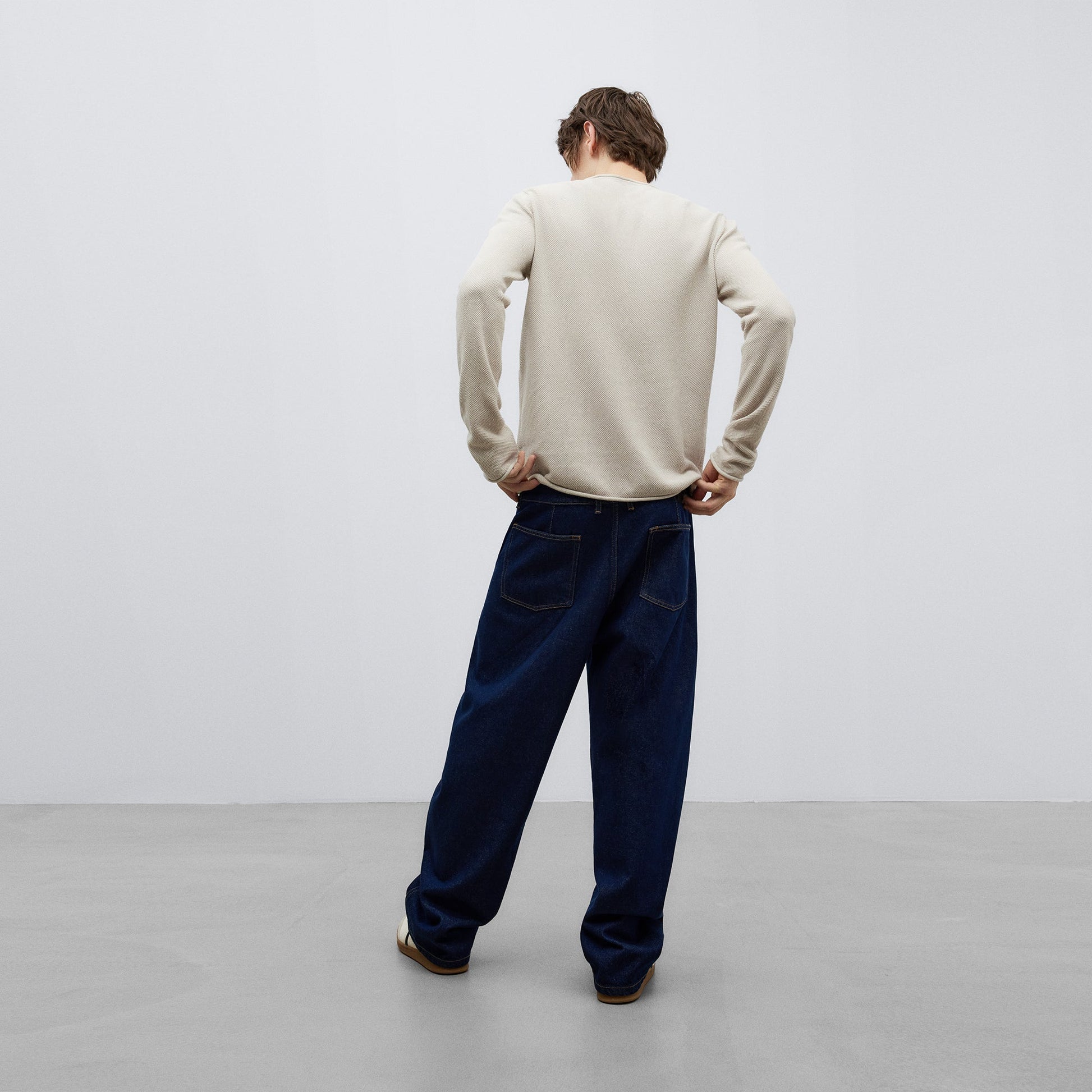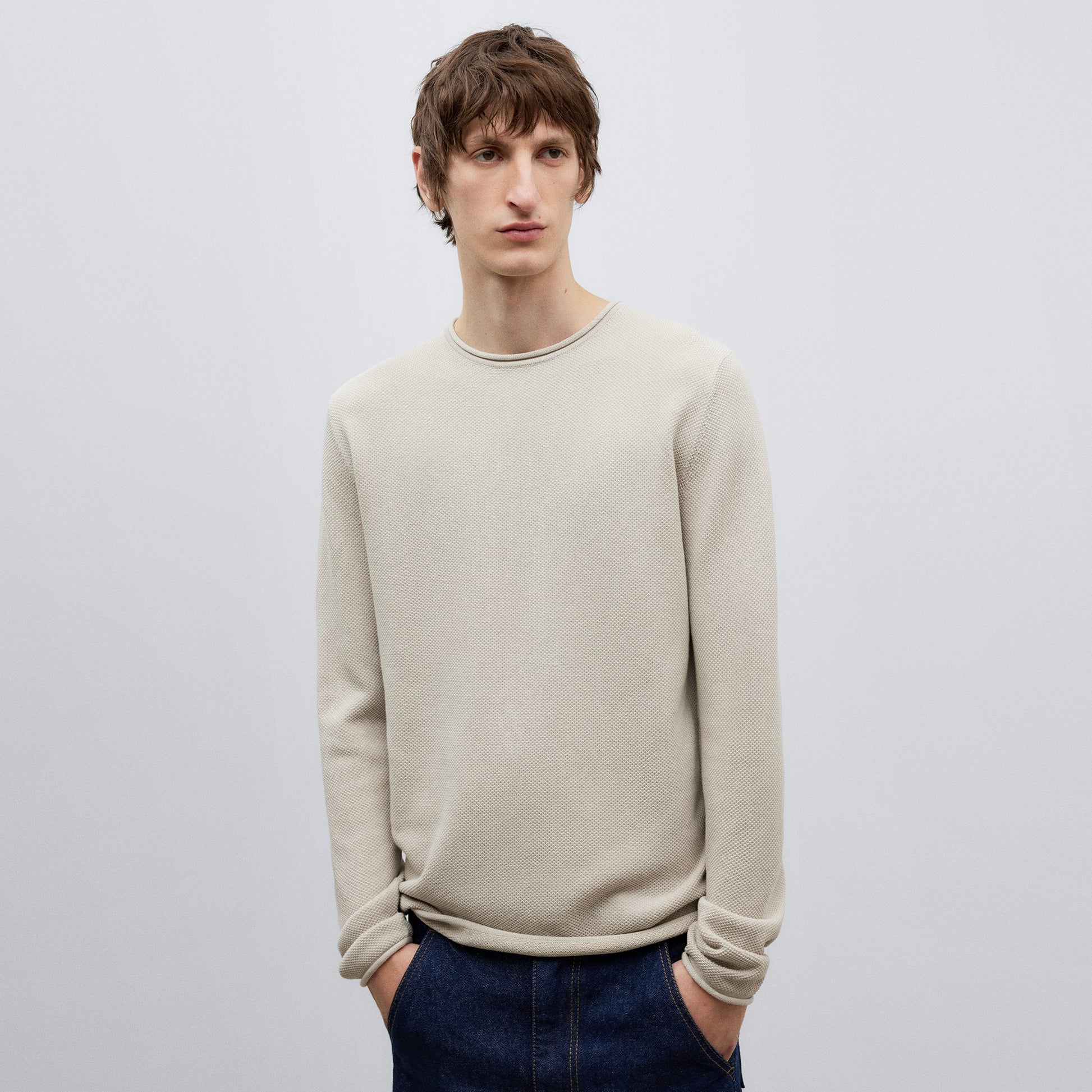 Beige Roll-Neck Cotton T-Shirt