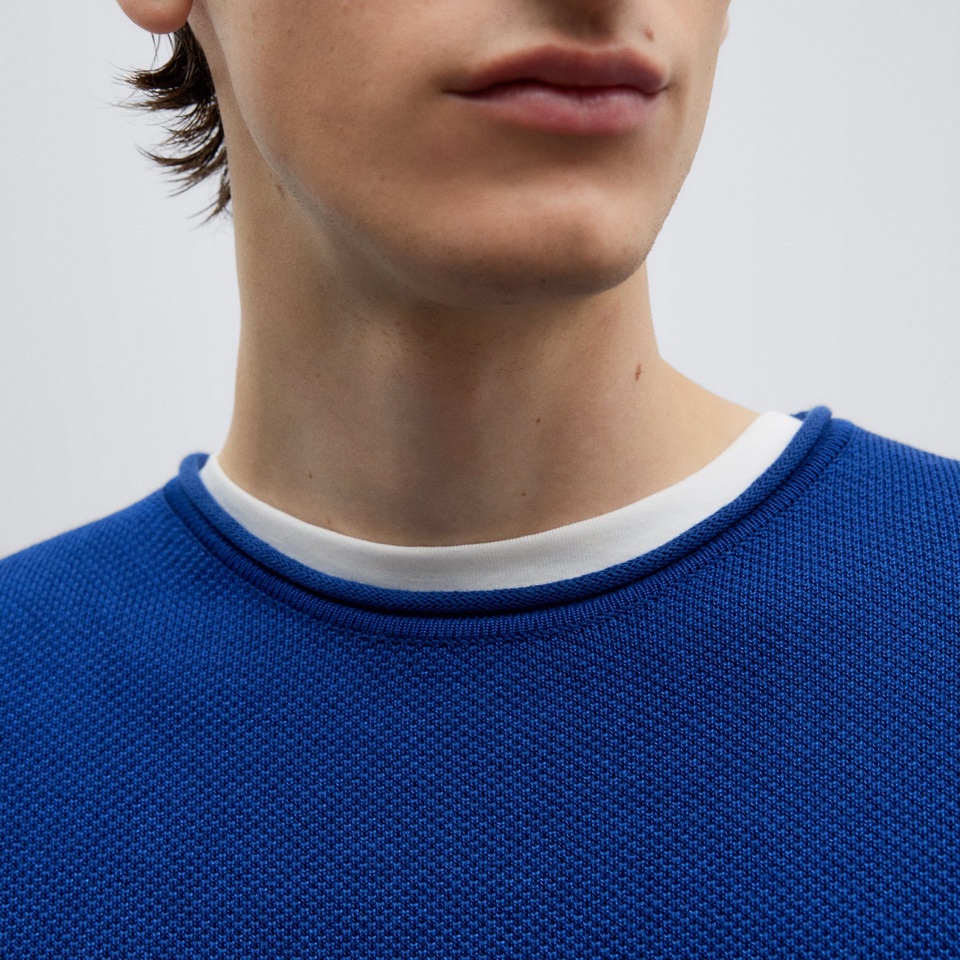 Roll-Neck Cotton T-Shirt For Men. Embroidered Logo At The Hem. Regular Fit.