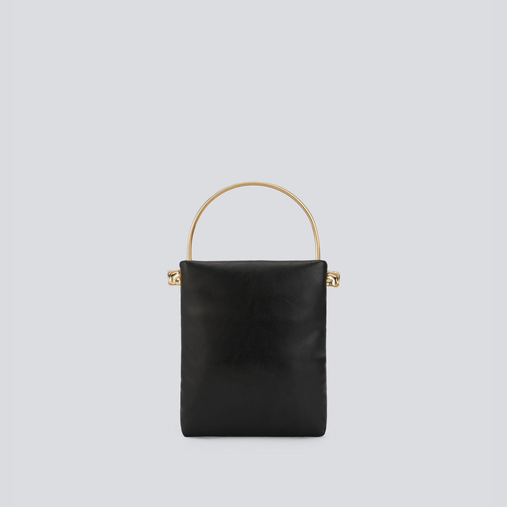 Leather-Non-Leather Medium Cocktail Bag. Quilted Smooth Fabric. Single Compartment. Metallic Hand Handle. Side Cube Detailing.