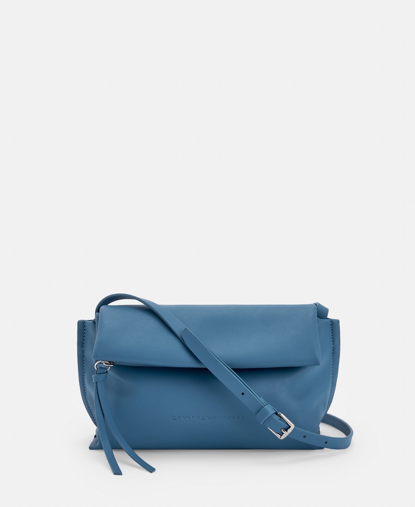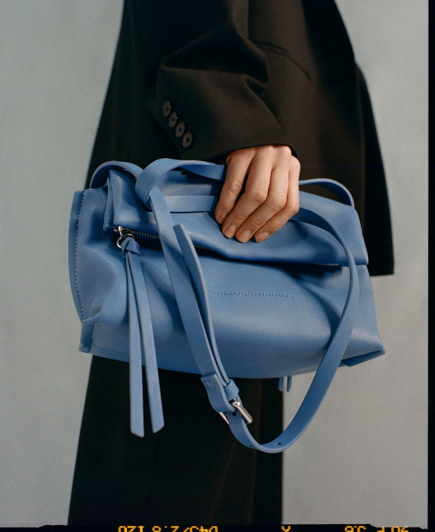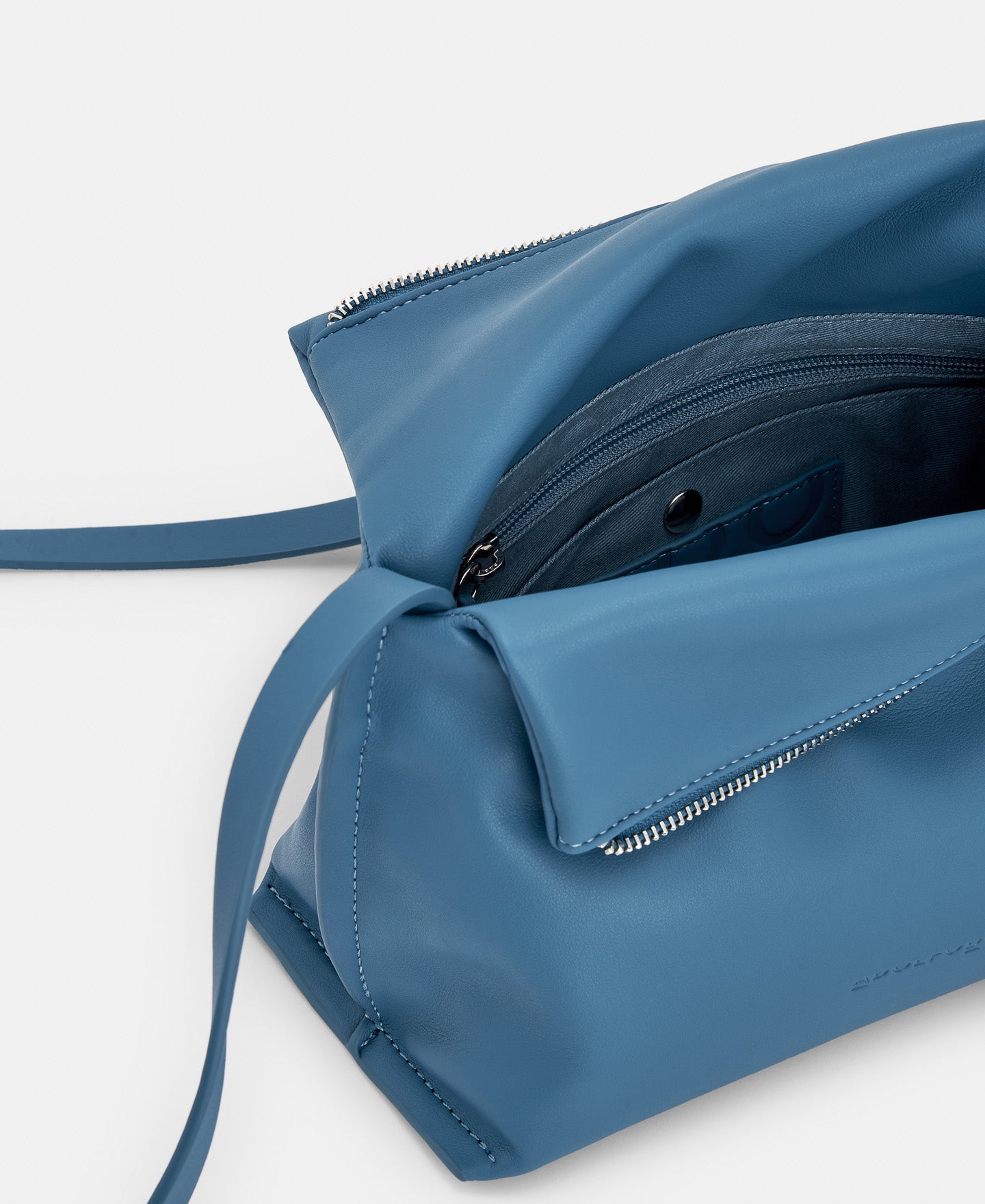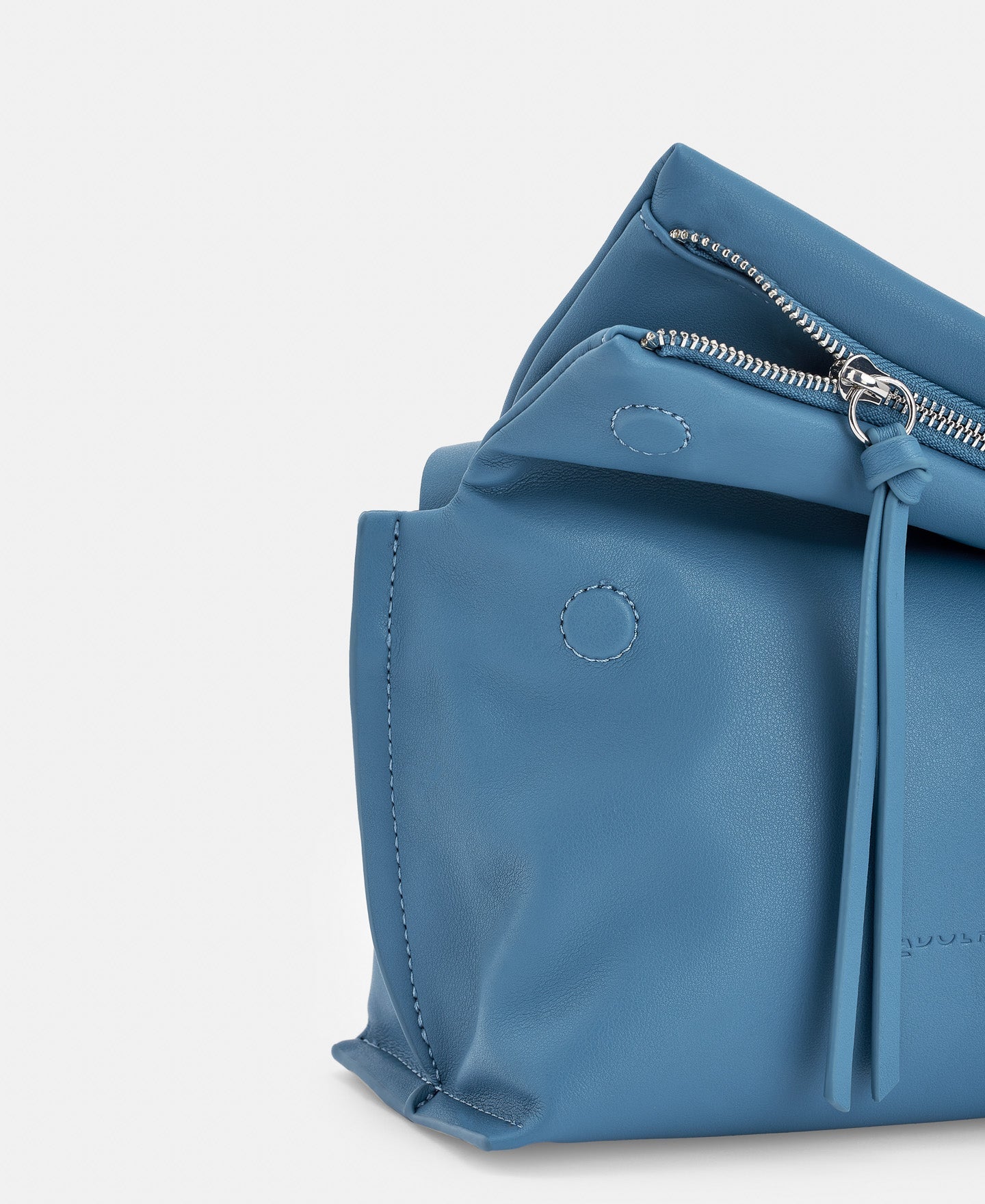 Shoulder bag made of recycled polyurethane and organic cotton lining. It has a compartment with flap and zipper closure. Long handle adjustable in three positions.