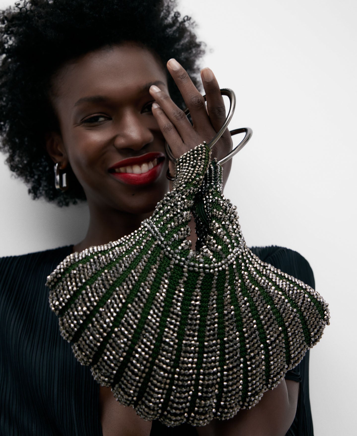 Description: Introducing our exquisite Bottle Green Clutch for women by Adolfo Dominguez. This luxurious accessory boasts a single spacious compartment, secured with a convenient zip and clip closure. The clutch is adorned with a sleek metallic hand strap, adding a touch of elegance to your ensemble. Our iconic logo is delicately engraved, showcasing the brand's timeless sophistication. Embellished with exquisite beads, this clutch is a true statement piece that effortlessly elevates any outfit. Experience the epitome of luxury with Adolfo Dominguez.