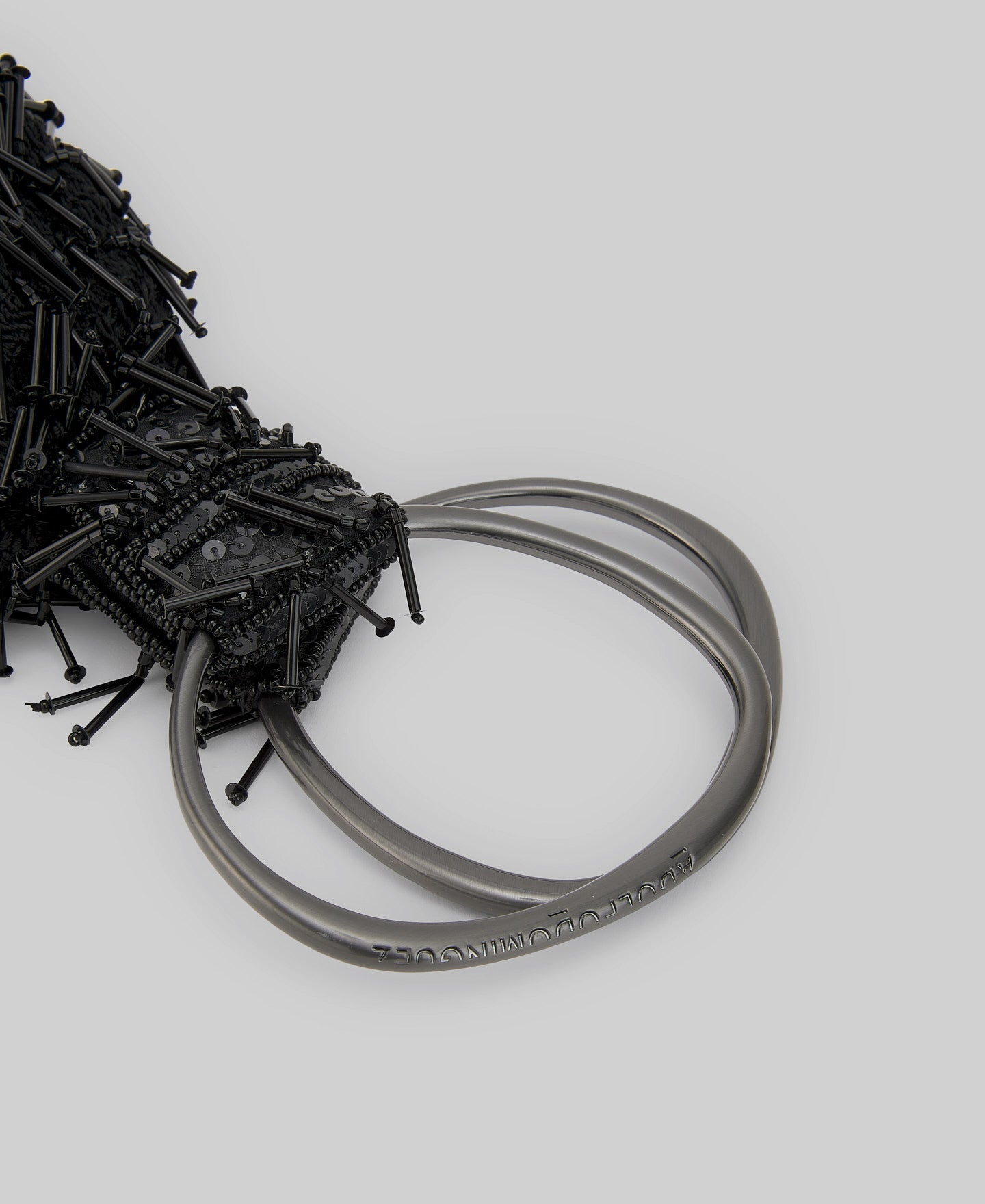 Beaded black cocktail bag woman. One compartment. Zipper fastening and magnetic fastening. Metallic hand strap with logo.