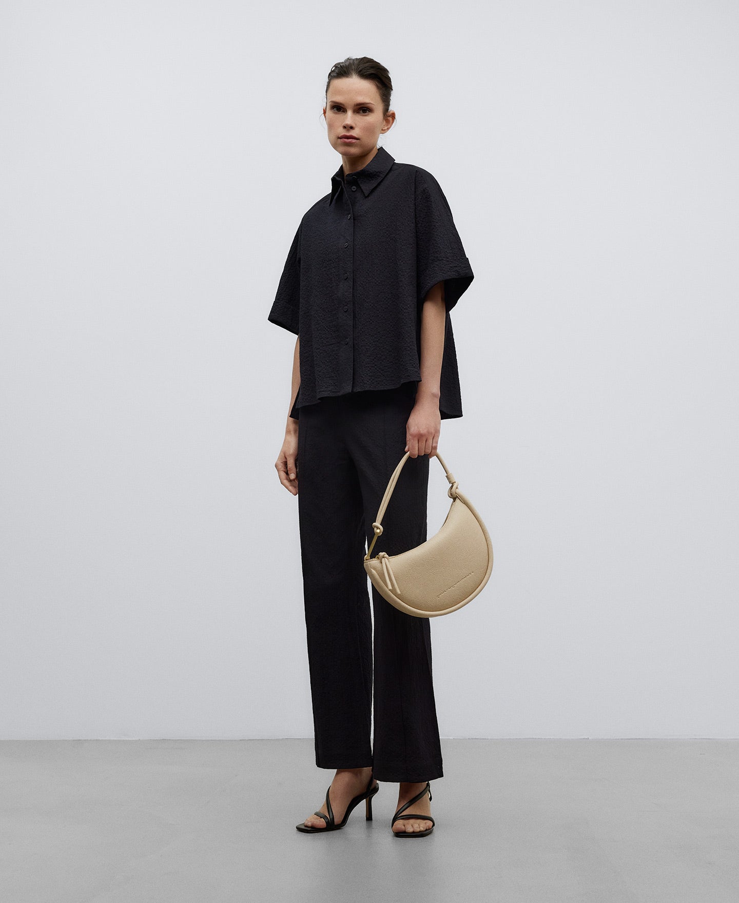 Light Cream Recycled Material Baguette Bag