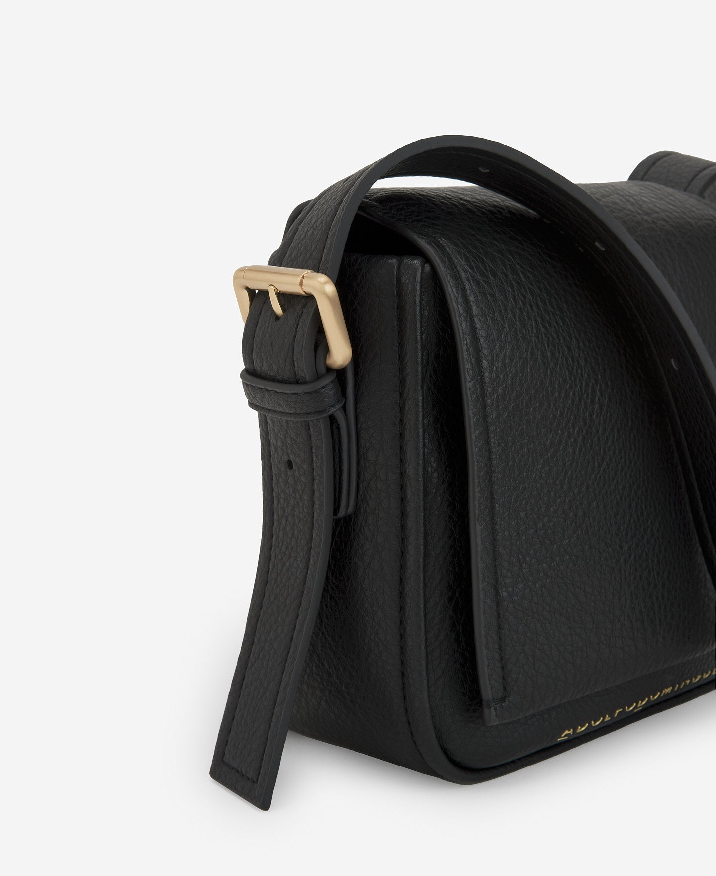 Description: Introducing our exquisite Small Shoulder Bag in a sleek black hue, crafted with a luxurious grain texture. This sophisticated accessory features a single spacious compartment, secured with a stylish flap closure. The adjustable long handle, adorned with a chic buckle, allows for a personalized fit and adds a touch of elegance to your ensemble. Elevate your style with this timeless and versatile shoulder bag from Adolfo Dominguez.