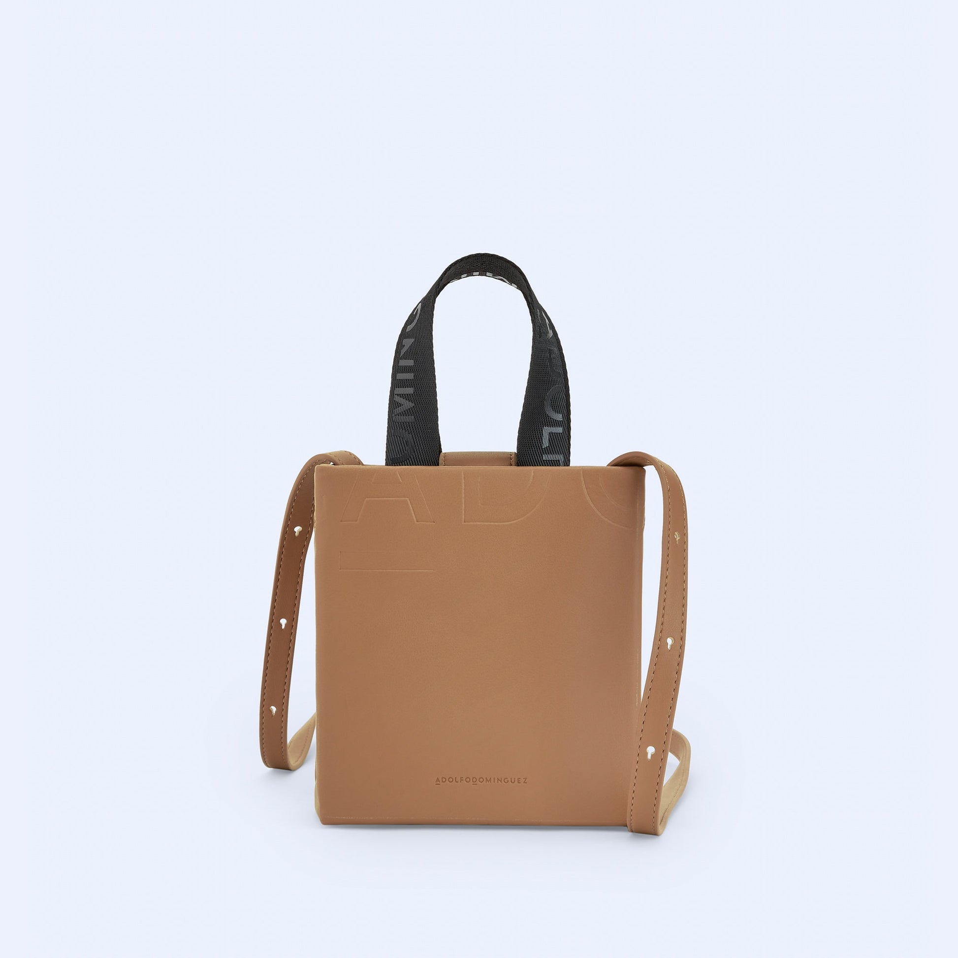 Paper bag design. Smooth finish. One compartment. Short shoulder strap. Removable long handle.