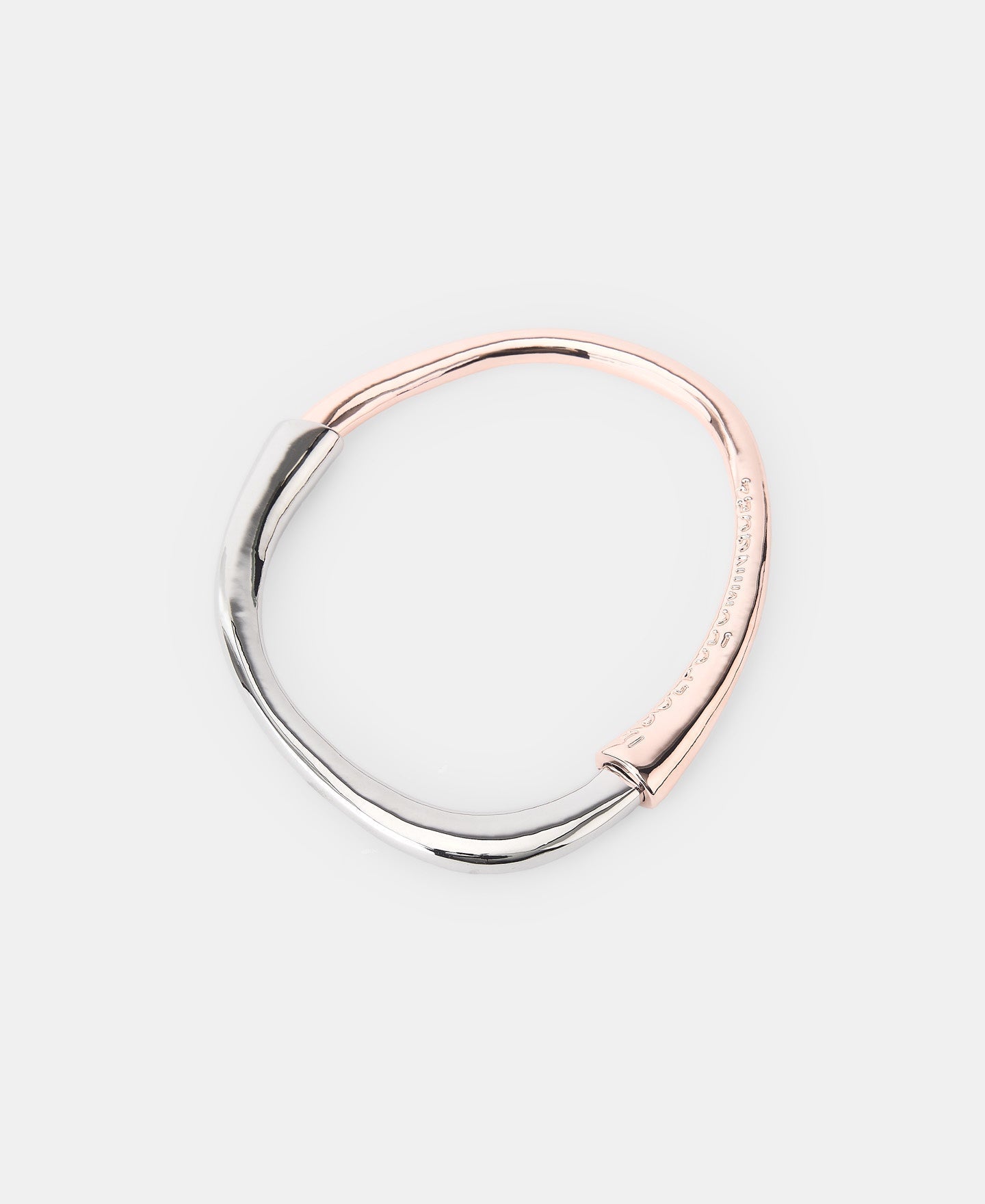 We have transferred our double piece ring to this bracelet. A set of contrasts of organic shape made in zinc, with a double gold and silver plated piece with a shiny finish and engraved logo. Combine it with the matching ring and necklace.Length: 20 Cm