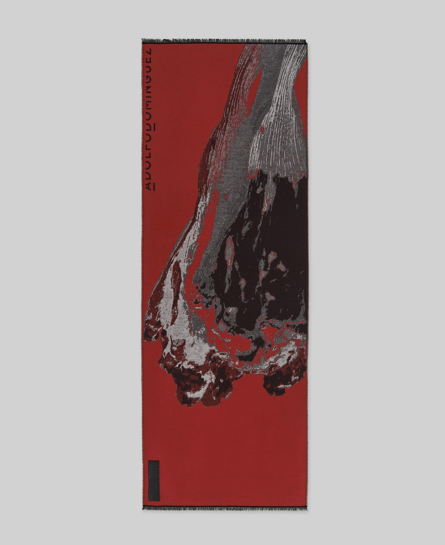 Printed jacquard scarf woman. Frayed hem. Logo label.