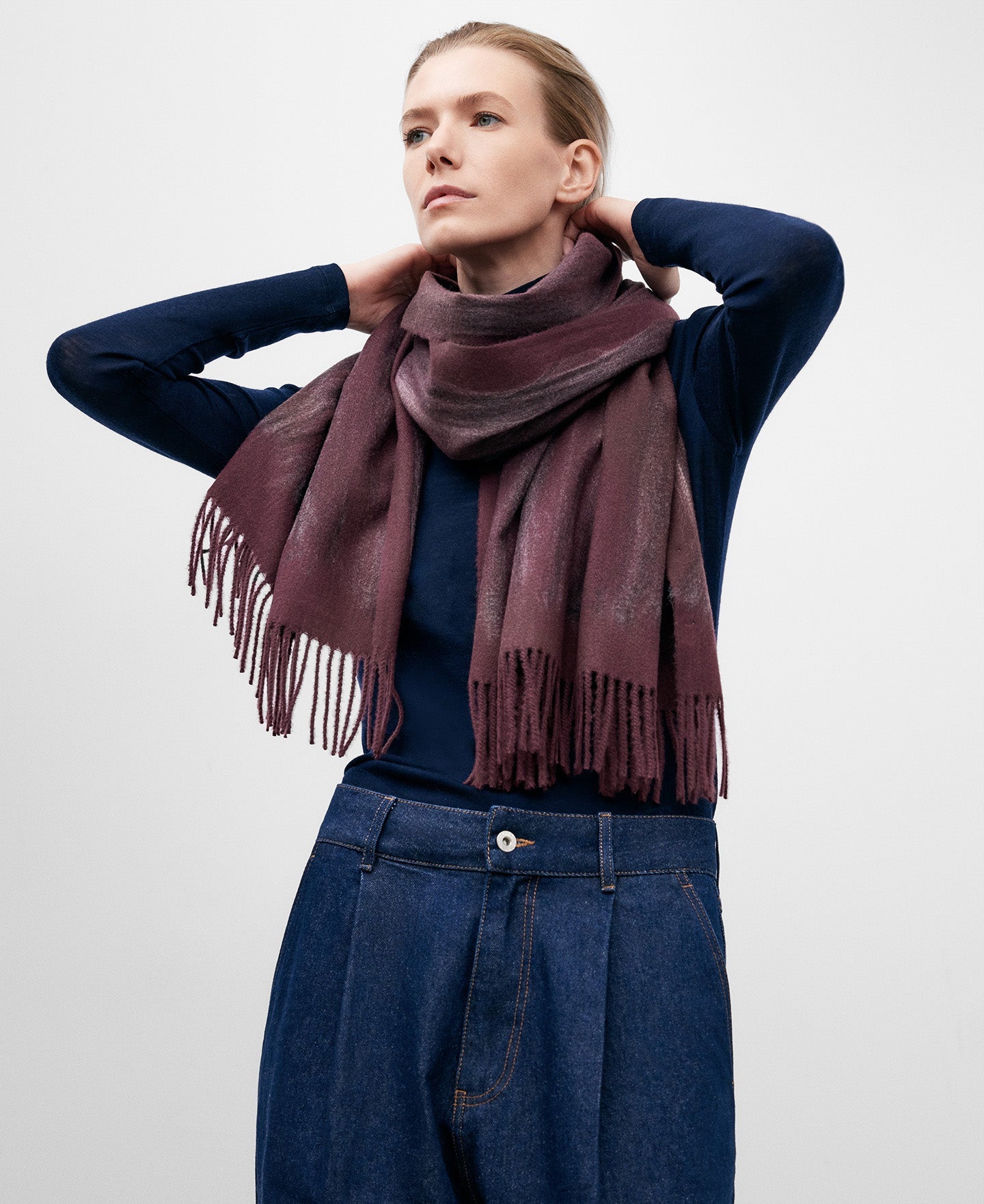 Description: Indulge in the luxurious elegance of our Burgundy Felted Scarf for women. Crafted with meticulous attention to detail, this exquisite accessory features contrasting yarns that add a touch of sophistication to any ensemble. Adorned with our iconic logoed etiqueta, this scarf is a true testament to the impeccable craftsmanship and timeless style that defines Adolfo Dominguez. Wrap yourself in warmth and unparalleled refinement with this must-have addition to your wardrobe.