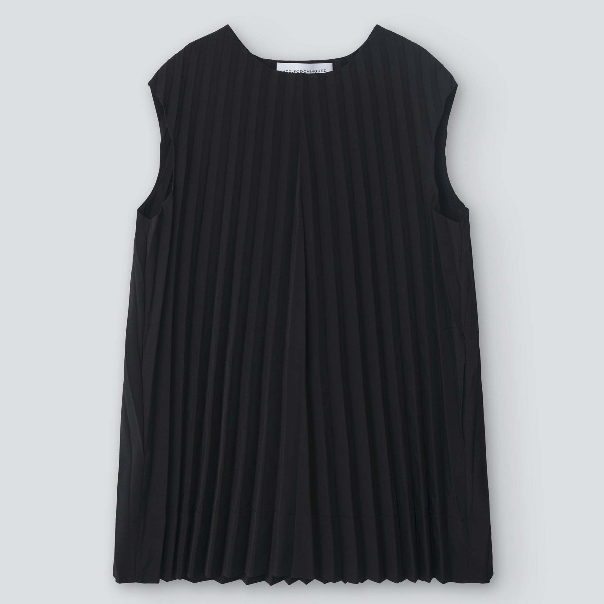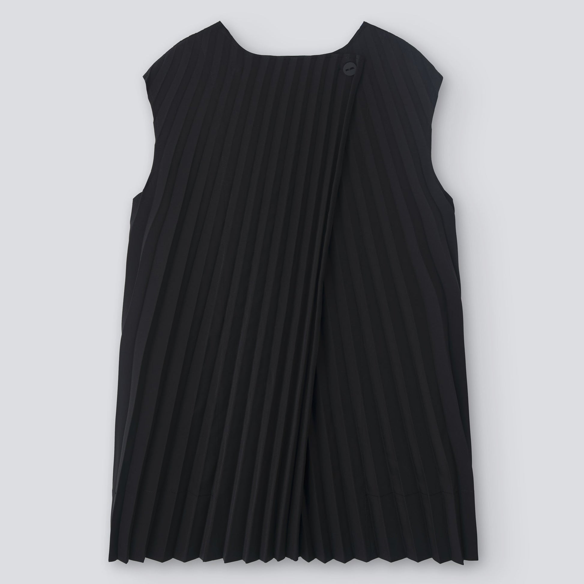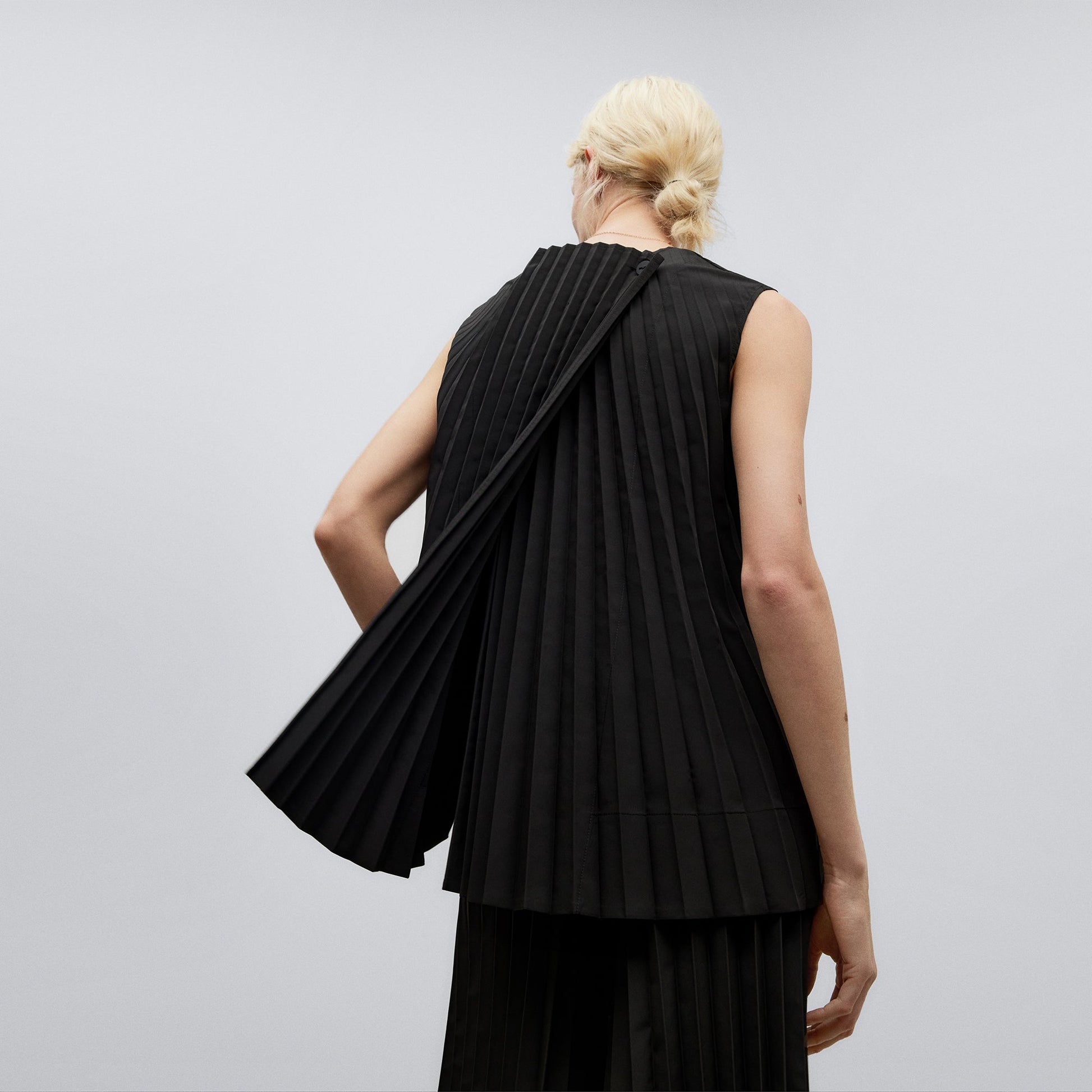 Black Crinkle Top Woman. Wrap-Around Collar With Button.