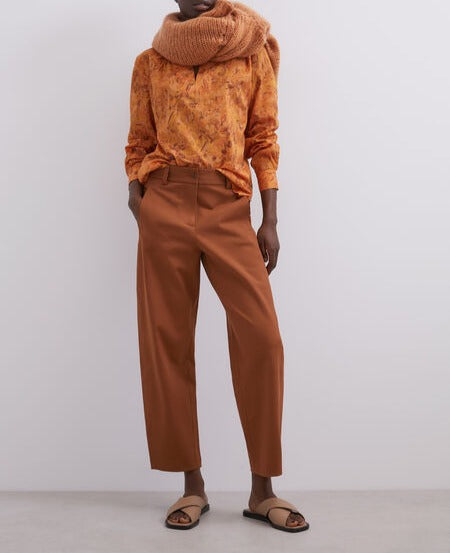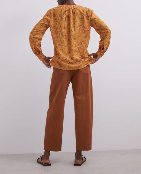 Subtle details. Cotton blouse with a flattering V-neckline and timeless print. Gathered collarbones and back emphasize the upper torso, adding fullness to the round fall. With long sleeves, shirt cuffs and a puffed-look gathers. Perfect with everything.100% Cotton