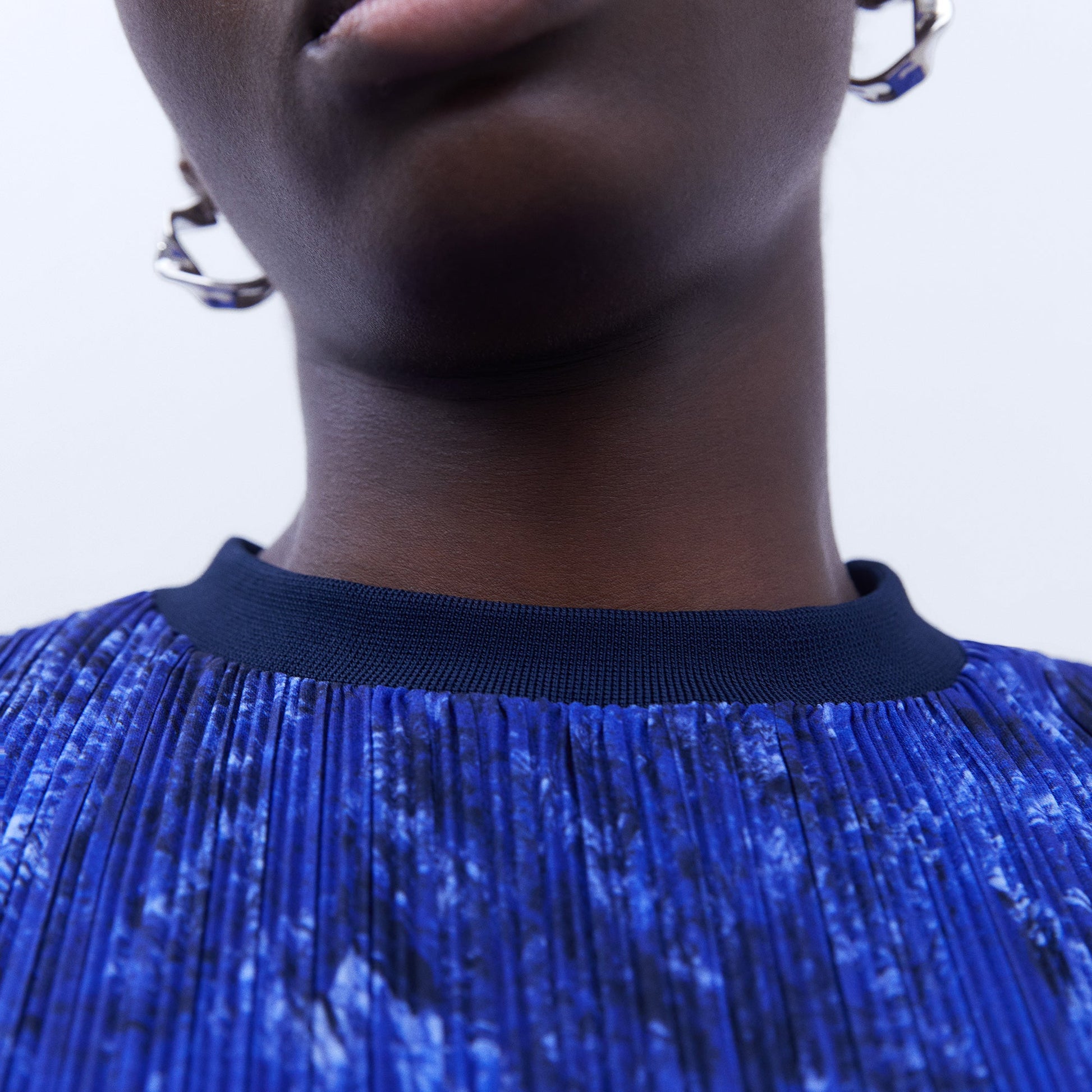 This T-shirt is made from 100% polyester, ensuring a soft and lightweight feel. The crinkle print adds texture and visual interest to the fabric, making it a standout piece in your collection. Experience the luxury of Adolfo Dominguez with this high-quality material.