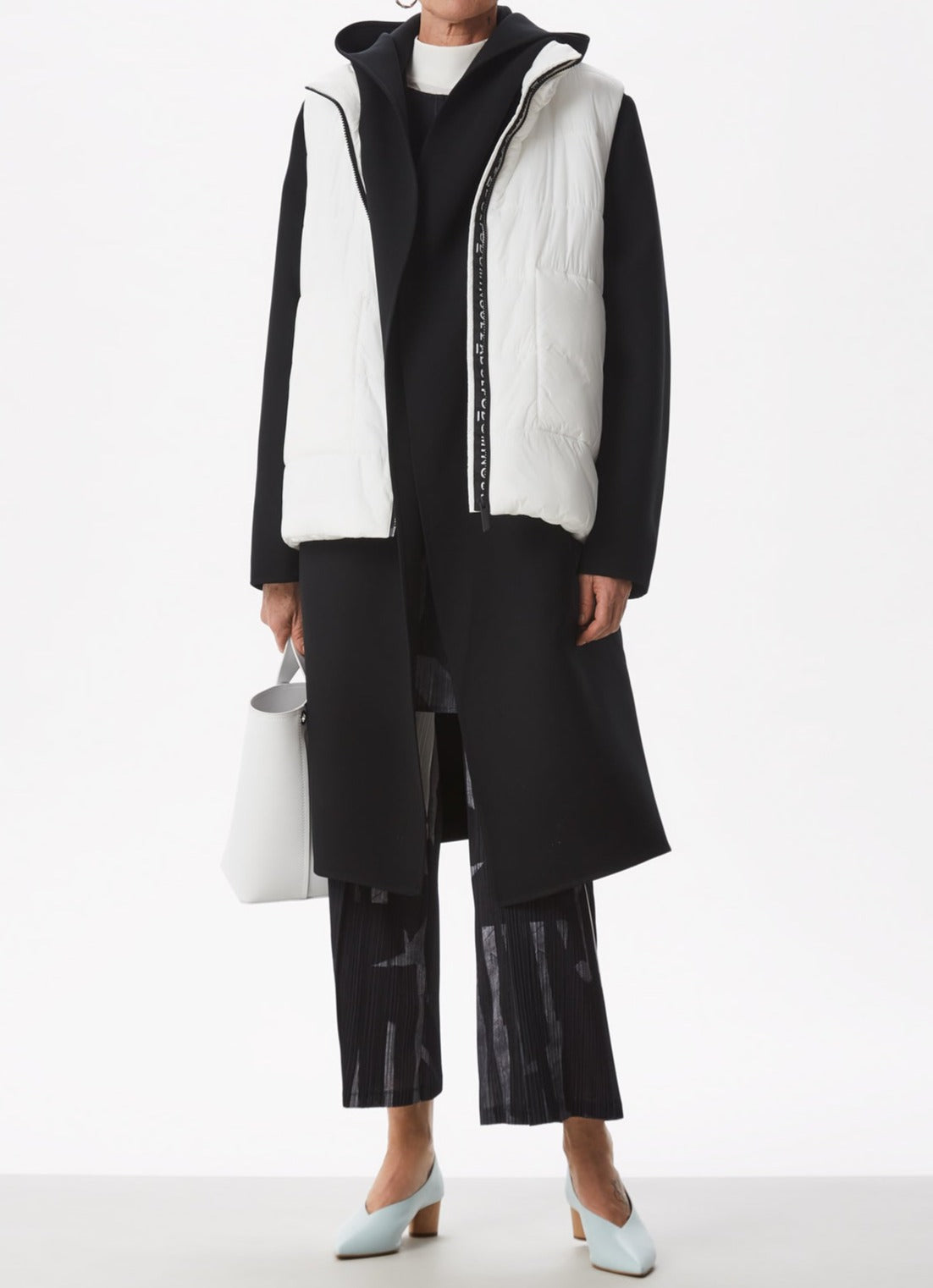 A long silhouette with side slits, this crinkle shirt features a minimalistic print, crew neckline and elbow sleeve. Team it with the matching trousers for a coordinated look.