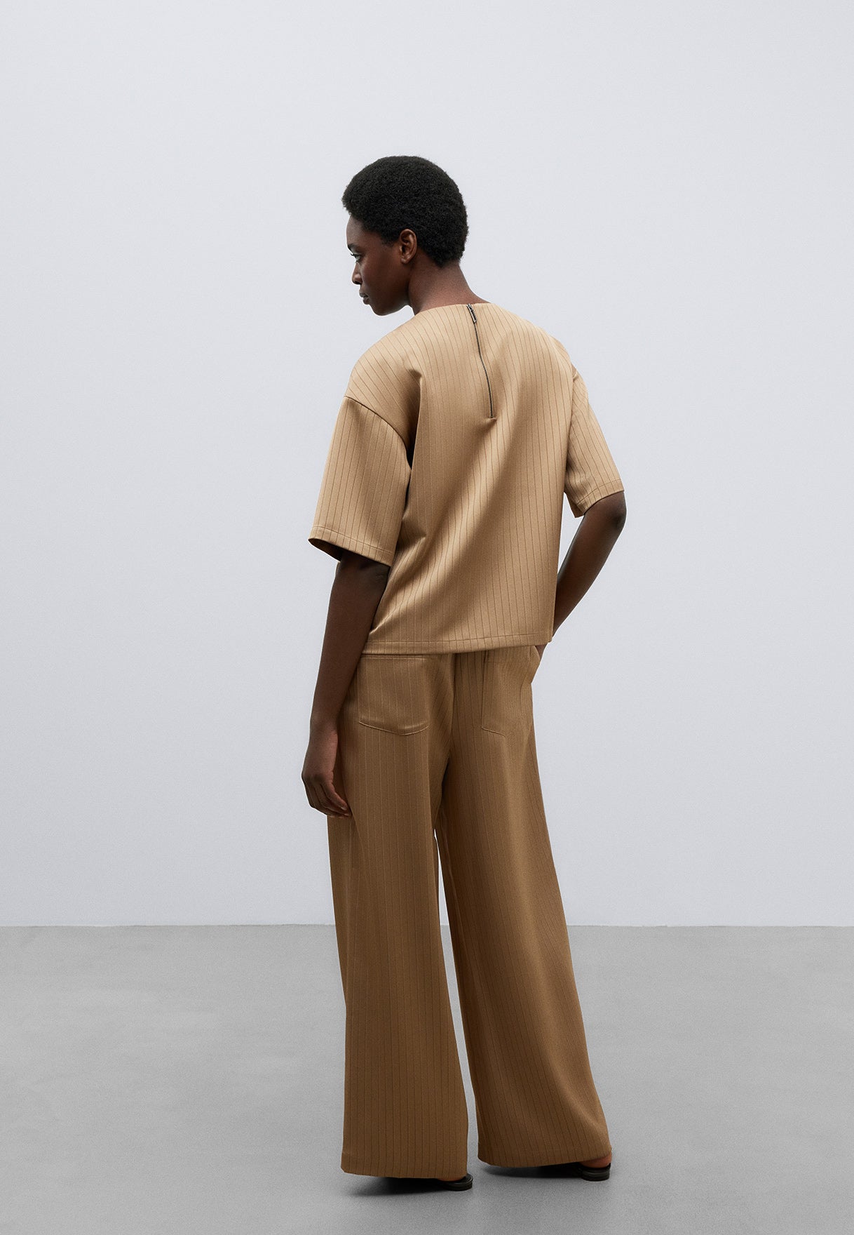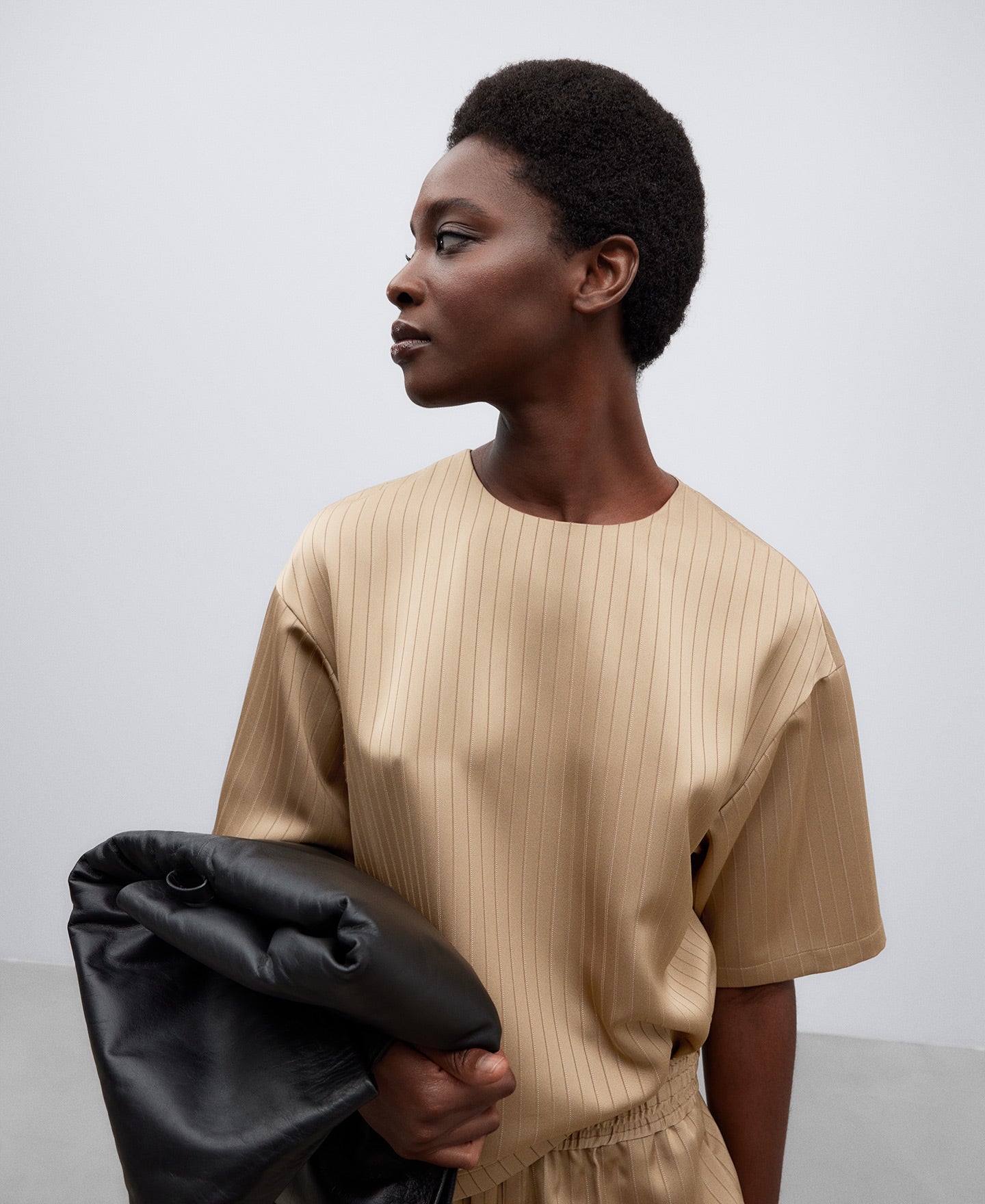 Striped Short Sleeve Top Woman. Zipper Closure On The Back.