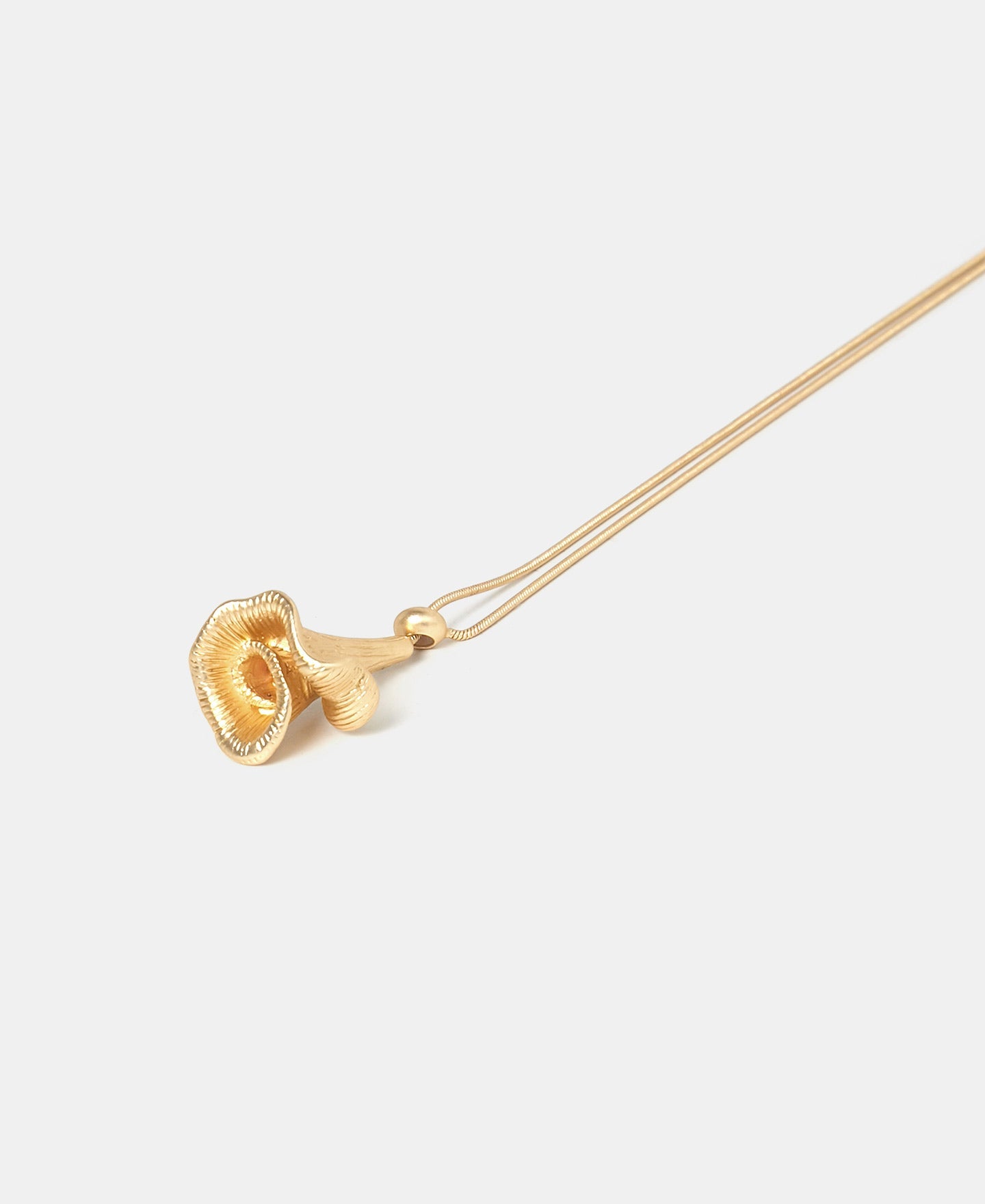 We have cast in metal a bell-shaped flower reproducing its volume and texture to give life to this pendant. It has a logoed choker and a metal cord. Nature always inspires us.Length: 70 Cm