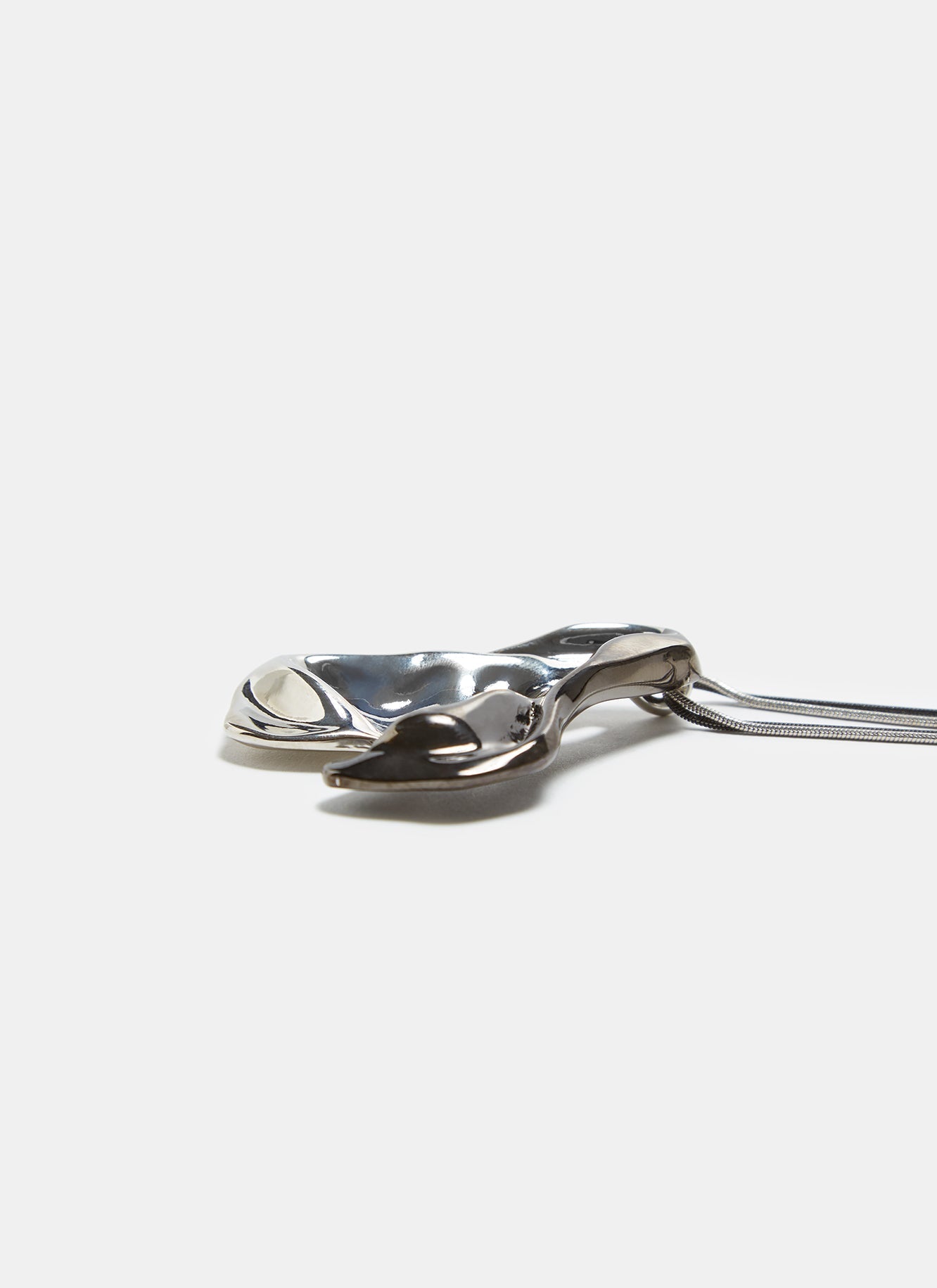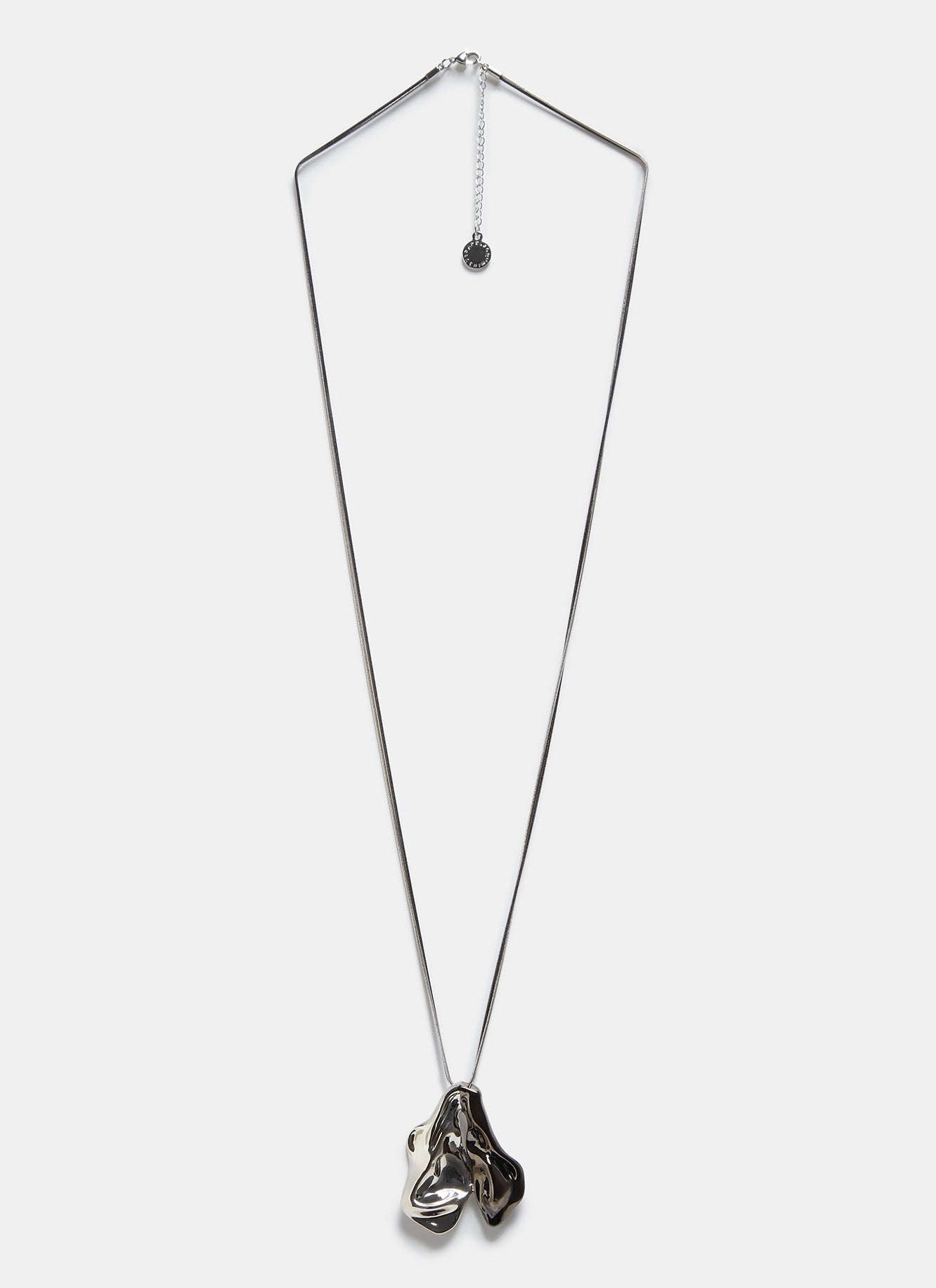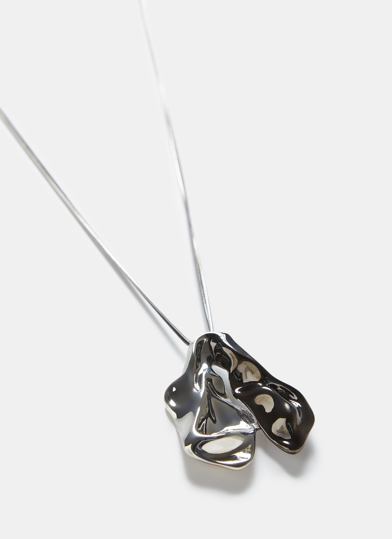This necklace features a bicolour double chain finished with an irregular folded pendant in polished metal. It has an adjustable lobster clasp. Team it with the matching earrings and bracelet for an elevated look.