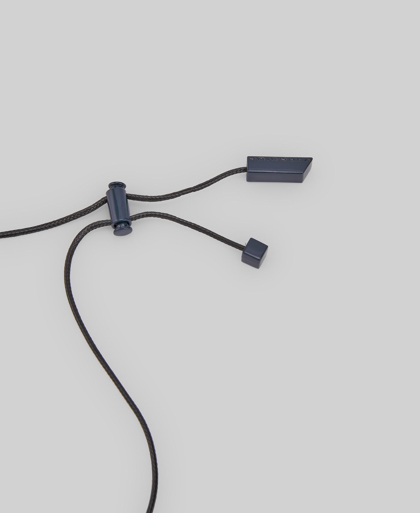 Lacquered metal leaf necklace woman. Adjustable long cord. Logotyped end caps.