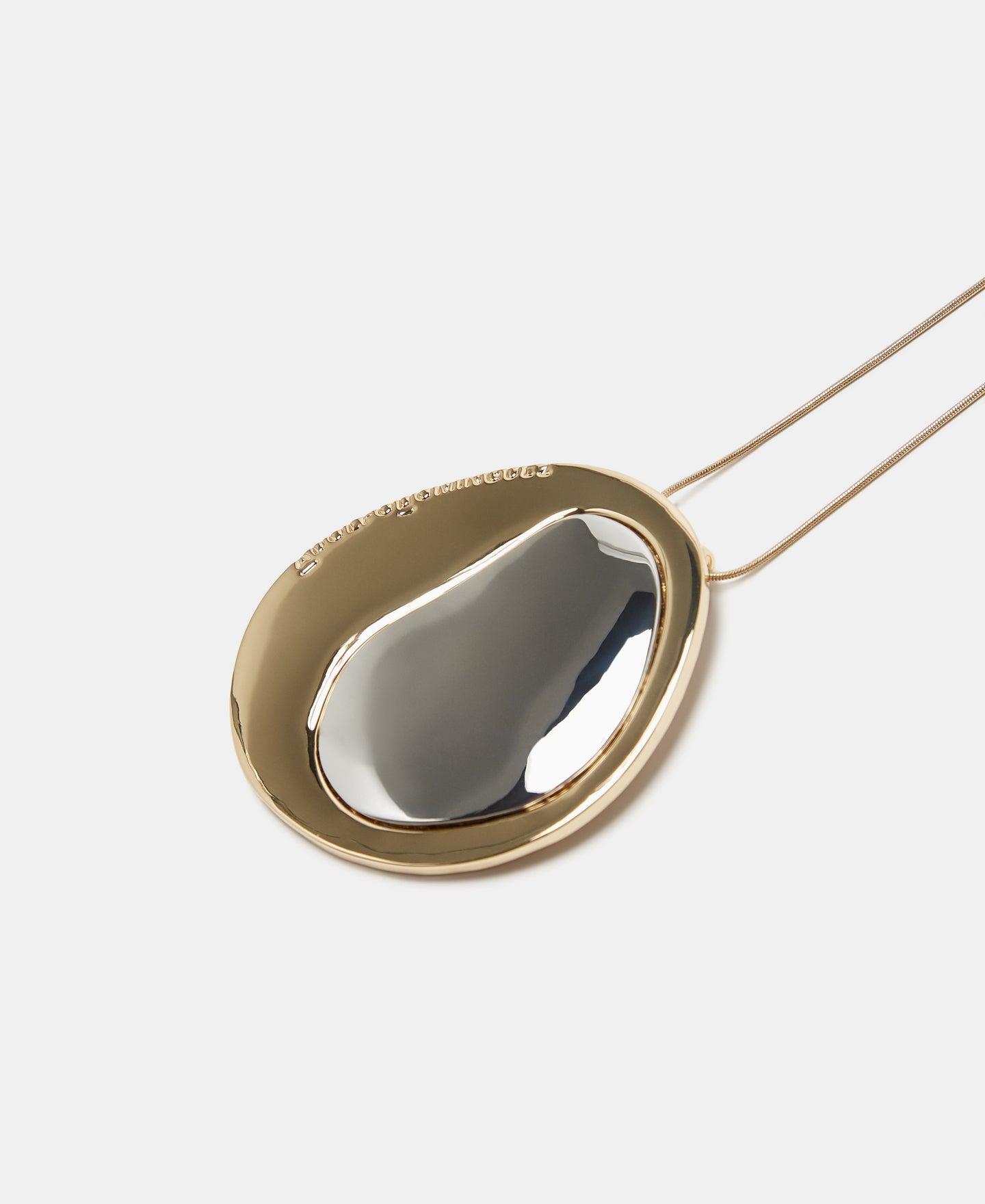 Organic lines necklace cast in polished bicolour metal. A double set harmonising sinuous shapes with a silver and gold finish. Hand designed in our workshop.With matching ring and earrings.Length: 90 Cm