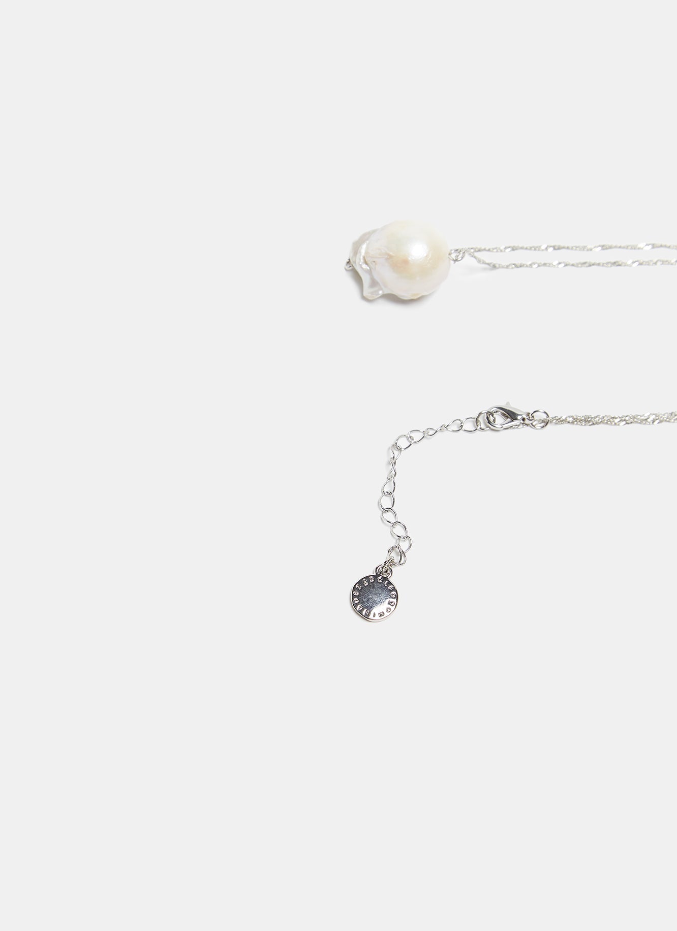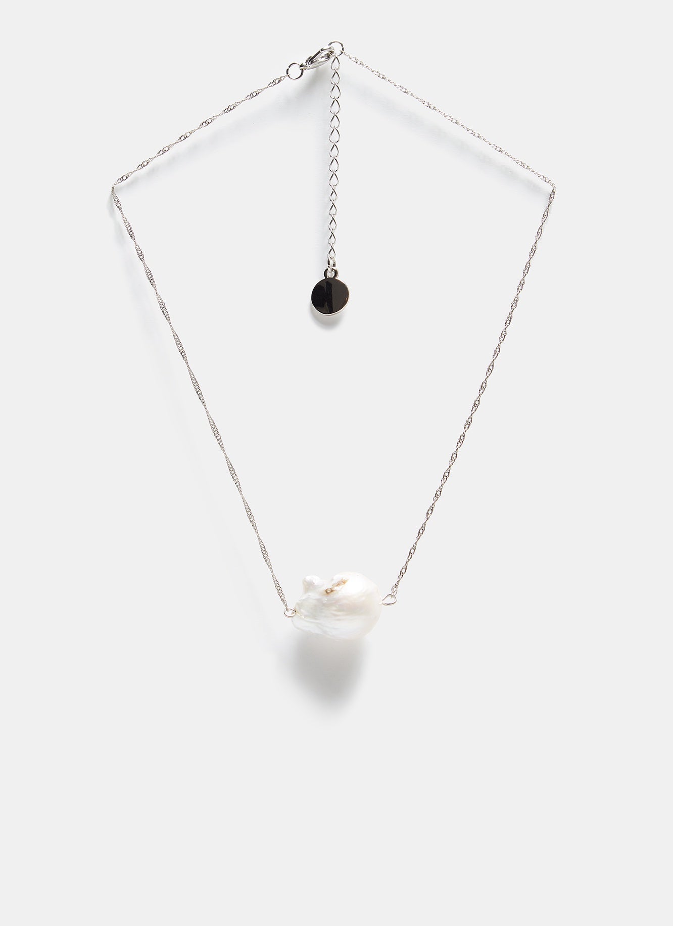 Short necklace featuring an organic natural pearl and adjustable lobster clasp closure. Matching earrings.