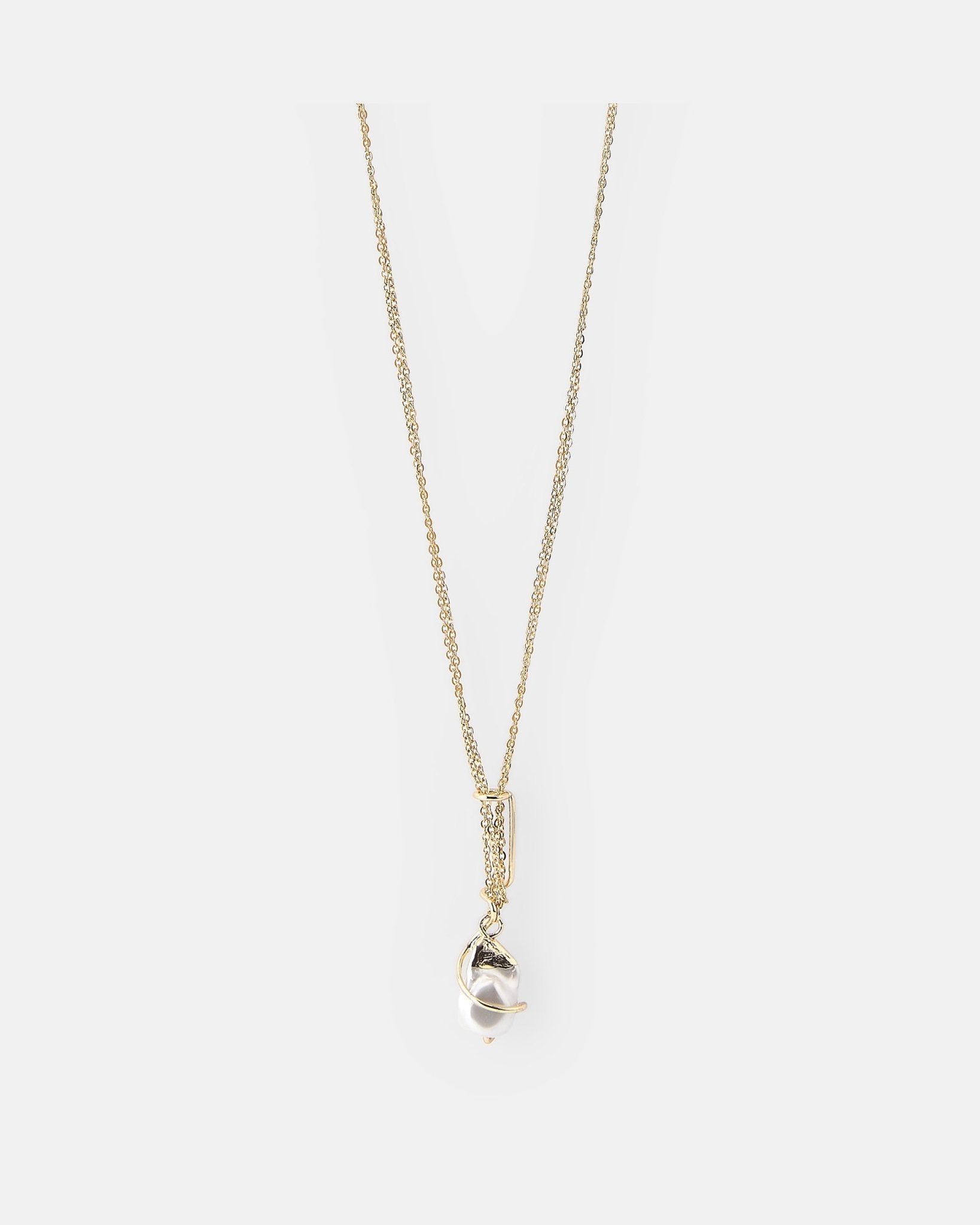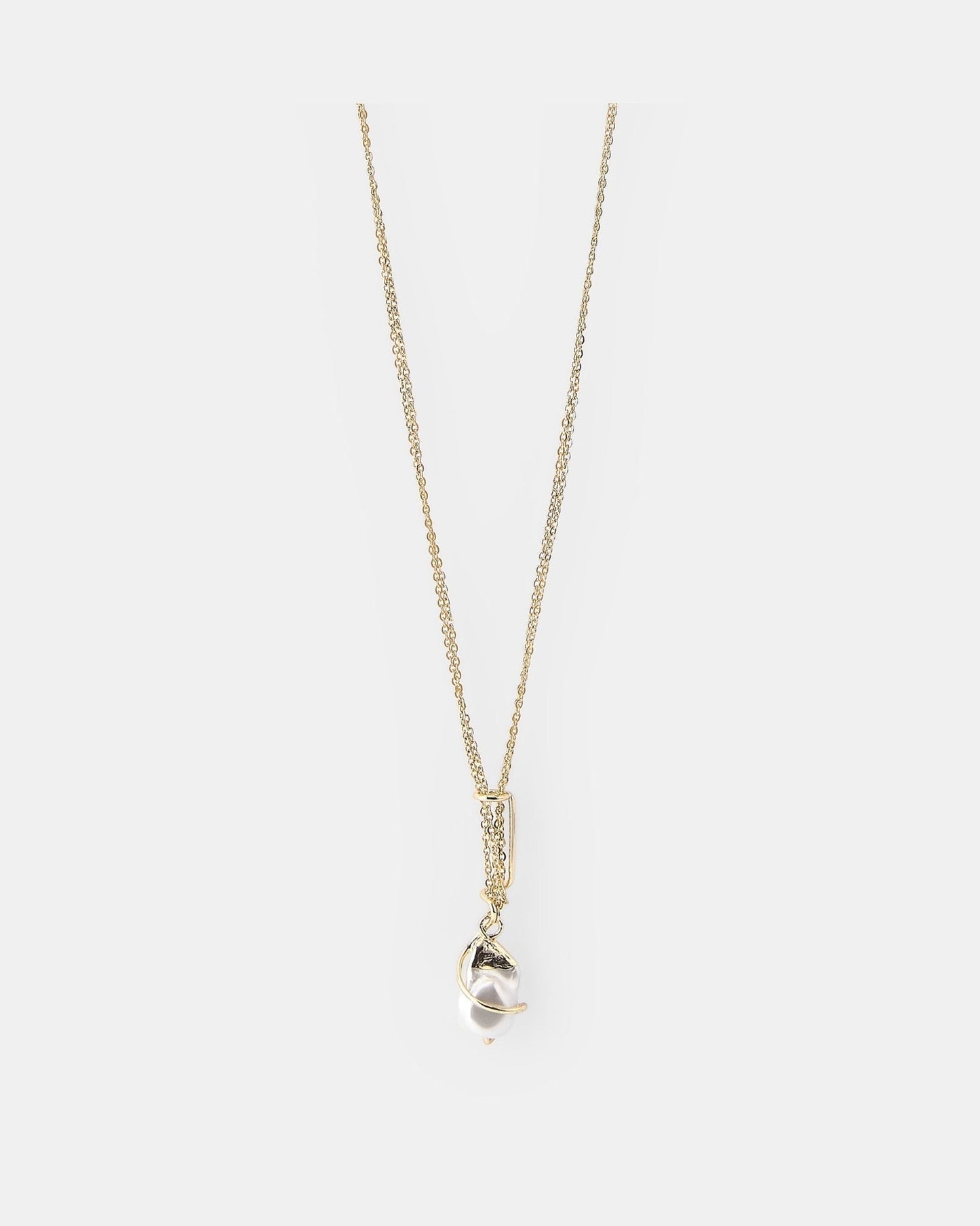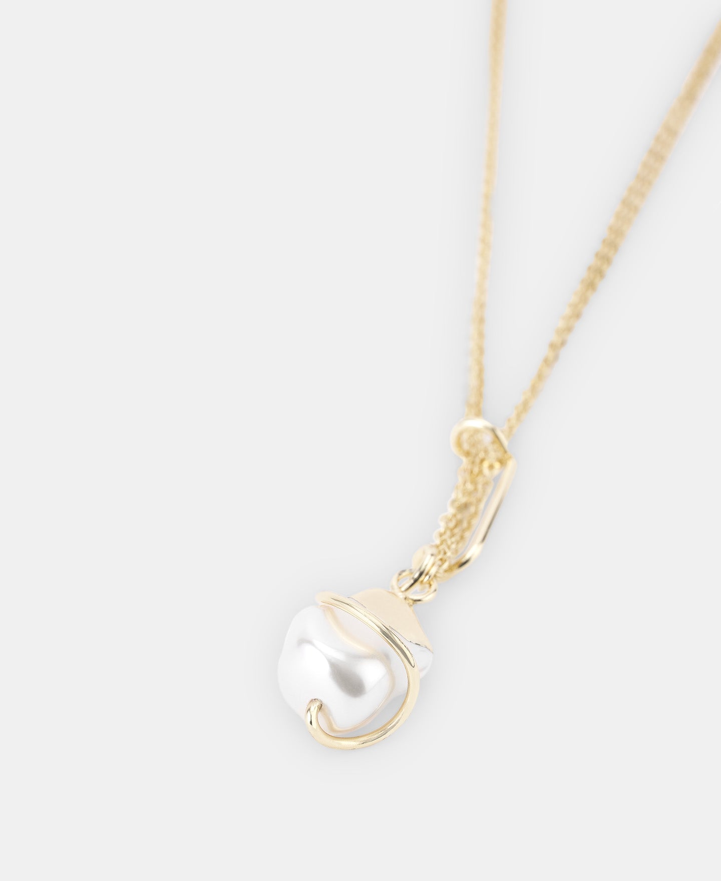 Ultra light neckline, designed in organic lines and finished in shiny artificial pearl. Flashes of light that frame your neck. Try it and raise the tone of your looks with matching earrings.Length: 7,5 Cm
