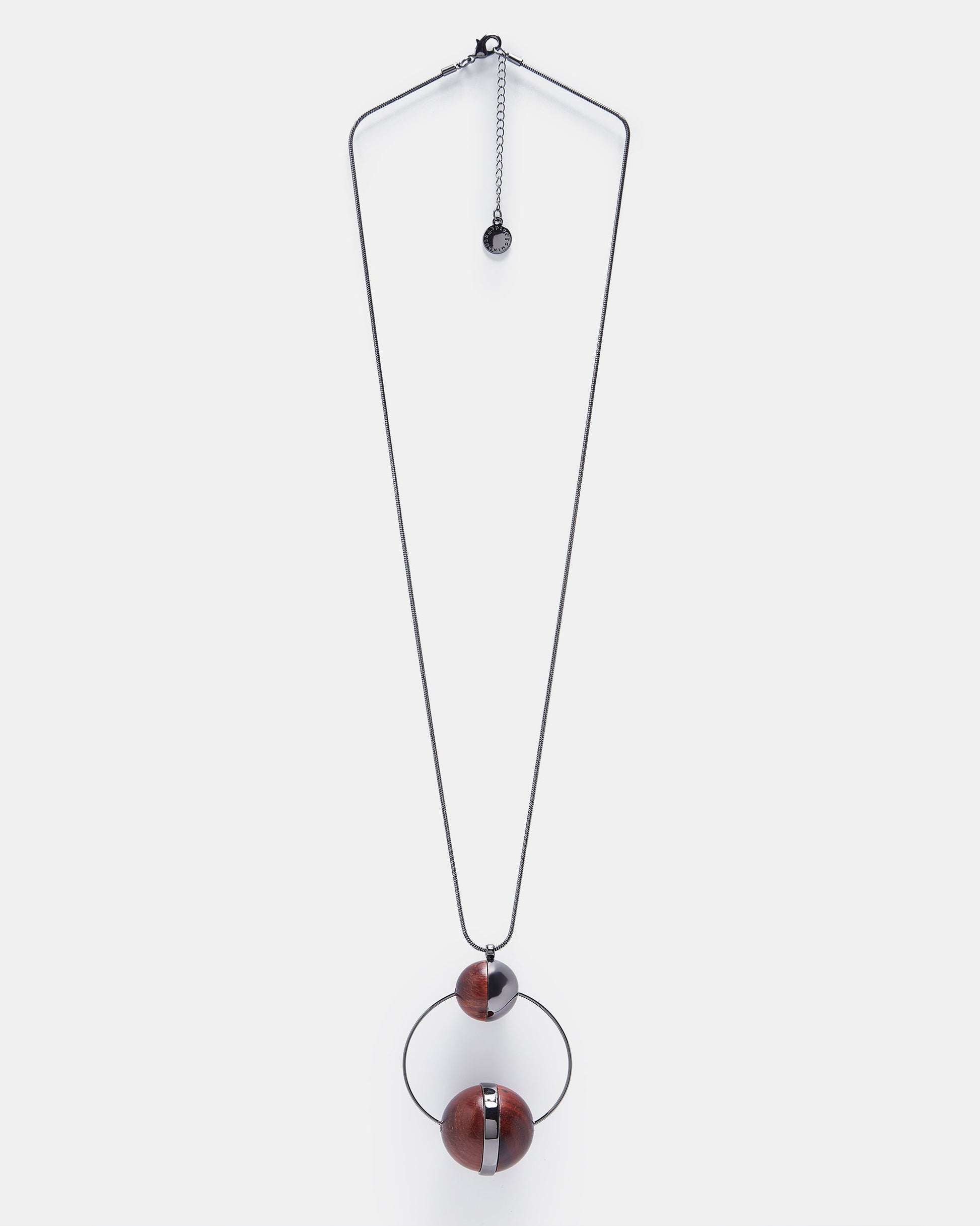 As if Jupiter was alined with Mars, this long metal necklace with wooden pendants takes you right into the Age of Aquarius and adds a 70's touch to your looks.