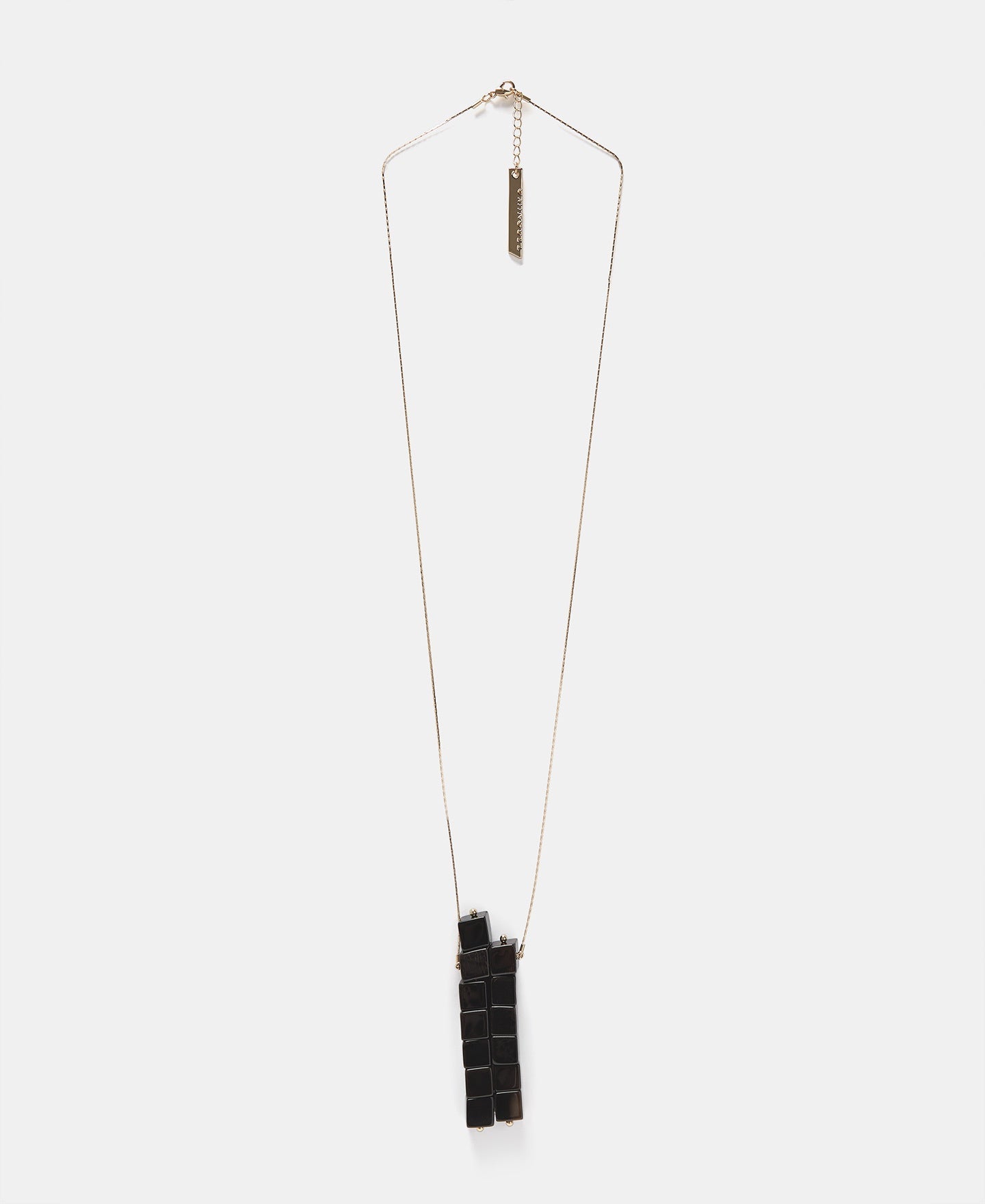 Feel the strength of the earth. The quadrangular pieces of this pendant are made from natural stone. That is why each one has a different tone and shine that makes it unique. It features a chain and a golden clasp, like the set of earrings and bracelet that completes this family.Length: 84 Cm