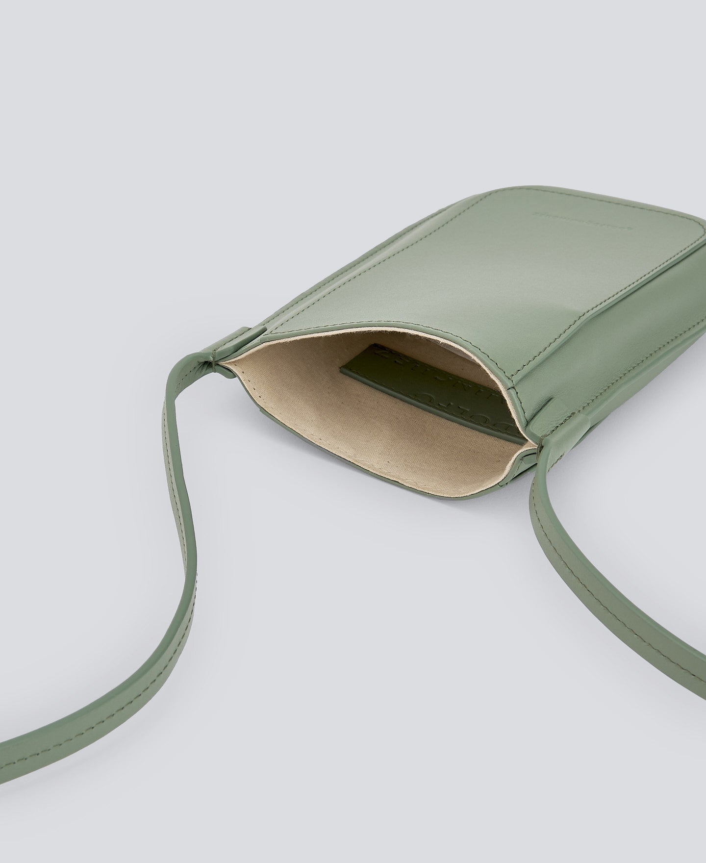 Green Leather Mobile Phone Holder Woman. Single Compartment. Card Holder. Adjustable Leather Strap.