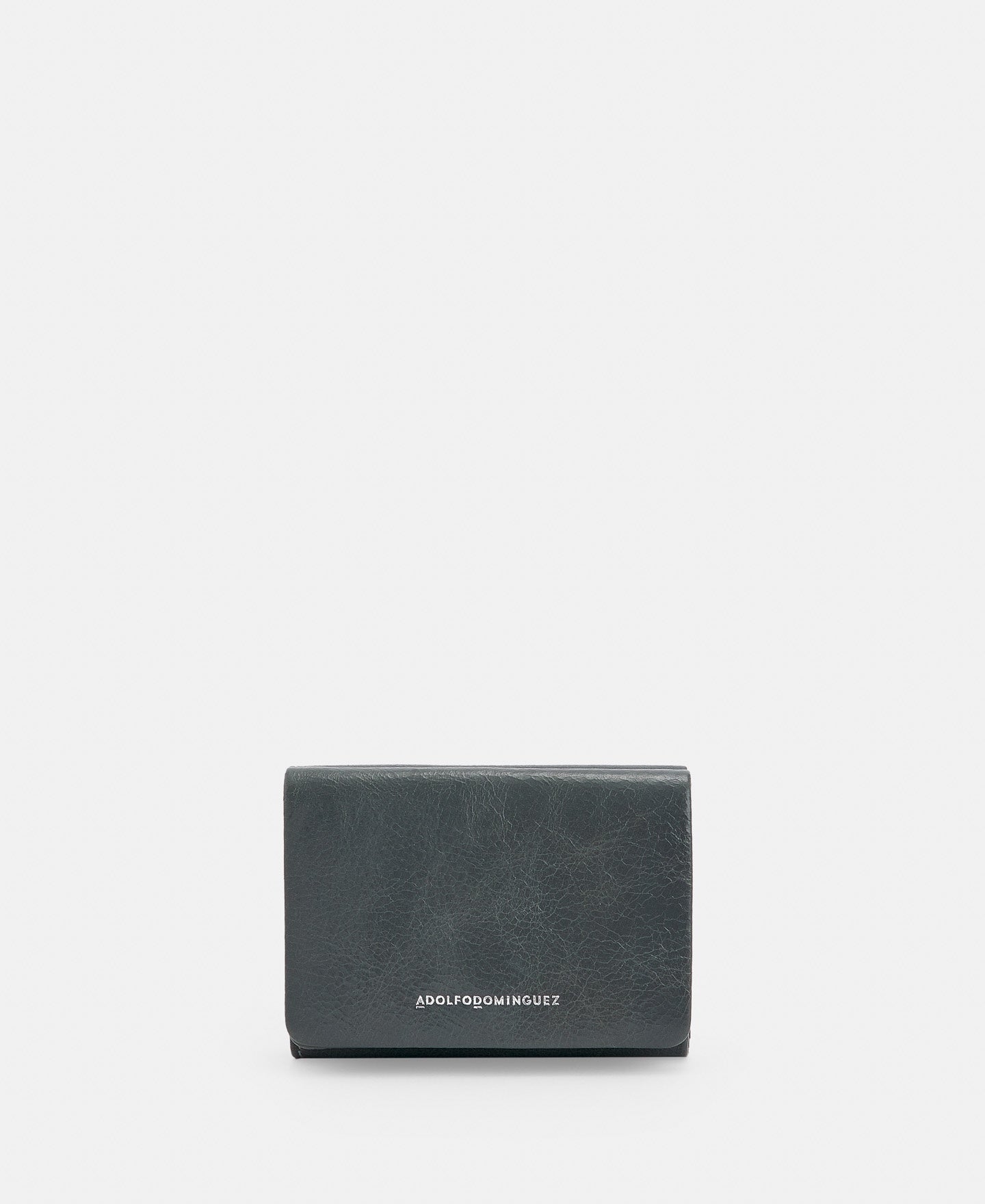 Crackle leather wallet. One compartment with flap closure. Silver engraved logo. Organic cotton lining.7.2 x 2.5 x 10 cm