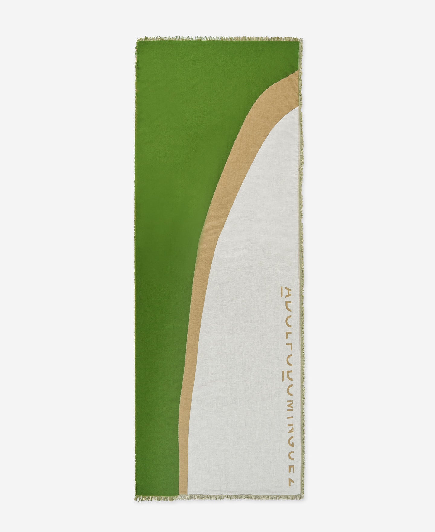 Description: Introducing the exquisite Green Tricolour Double Jacquard Shawl by Adolfo Dominguez. Crafted with a blend of luxurious cotton and viscose, this shawl showcases a stunning jacquard logo design. The intricate pattern is beautifully woven into the fabric, creating a mesmerizing visual appeal. Finished with a delicate fringed edge, this shawl exudes elegance and sophistication. Wrap yourself in the epitome of luxury and elevate your style with this remarkable piece from Adolfo Dominguez.