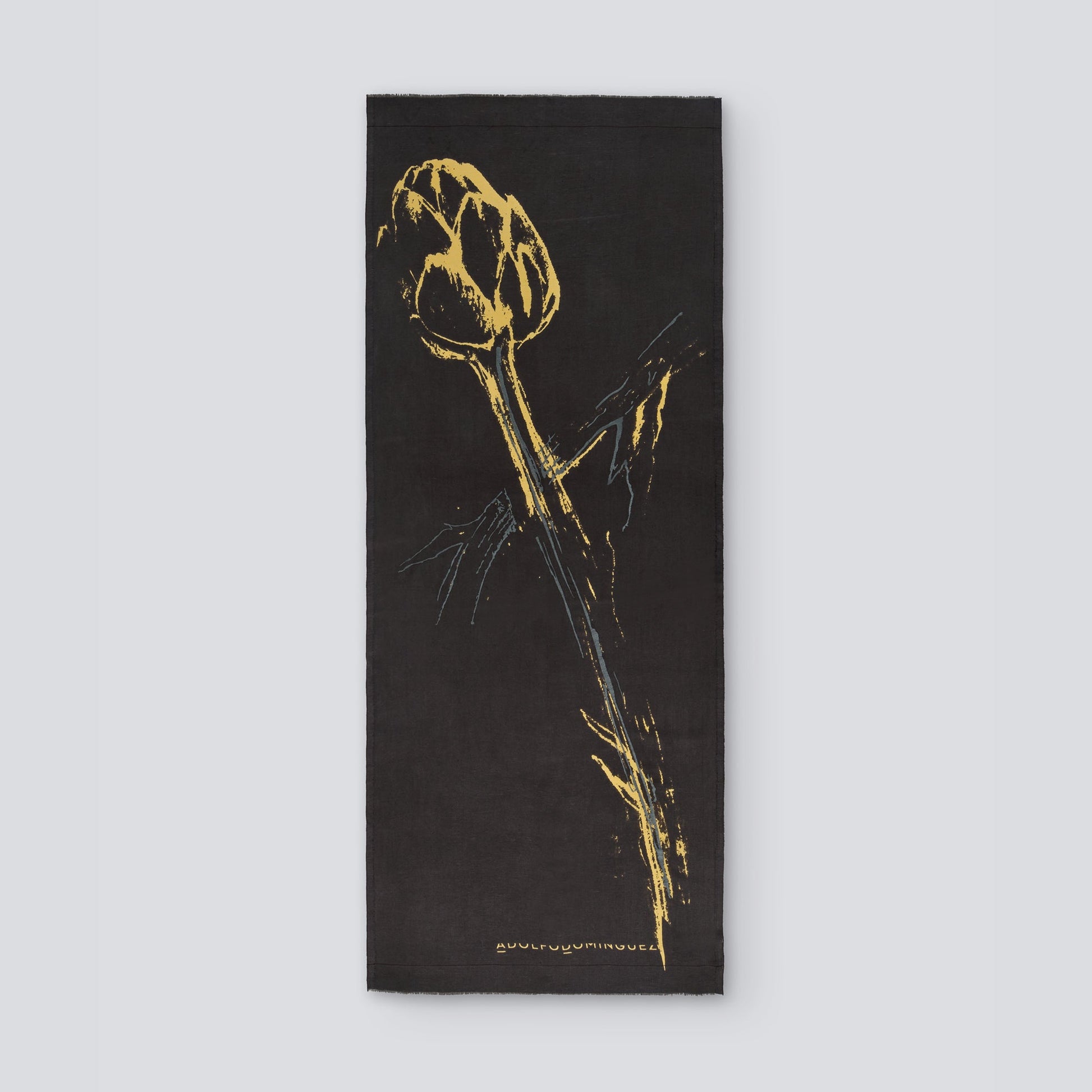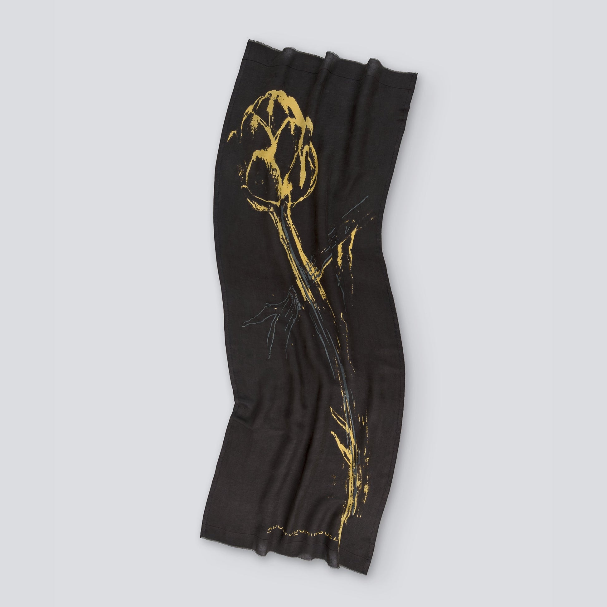 Artichoke Motif Shawl Woman. Print Combined With Embroidery. Printed Logo