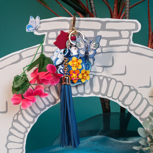 Can we tempt you with the Gardens of the World Greece Key Charm? This charming accessory comes with both a ring and a clasp, so you can attach it to your keys or to your Gardens of the World Greece bag for an added touch of style. It features a cat hiding in a pot, along with butterfly and cat-shaped mini charms, plus a tassel charm adorned with an evil eye bead. We’re completely captivated by this Greece-inspired vegan leather charm, and we’re sure you’ll enjoy using it as much as possible this season. Now, one question remains: where should we travel next?