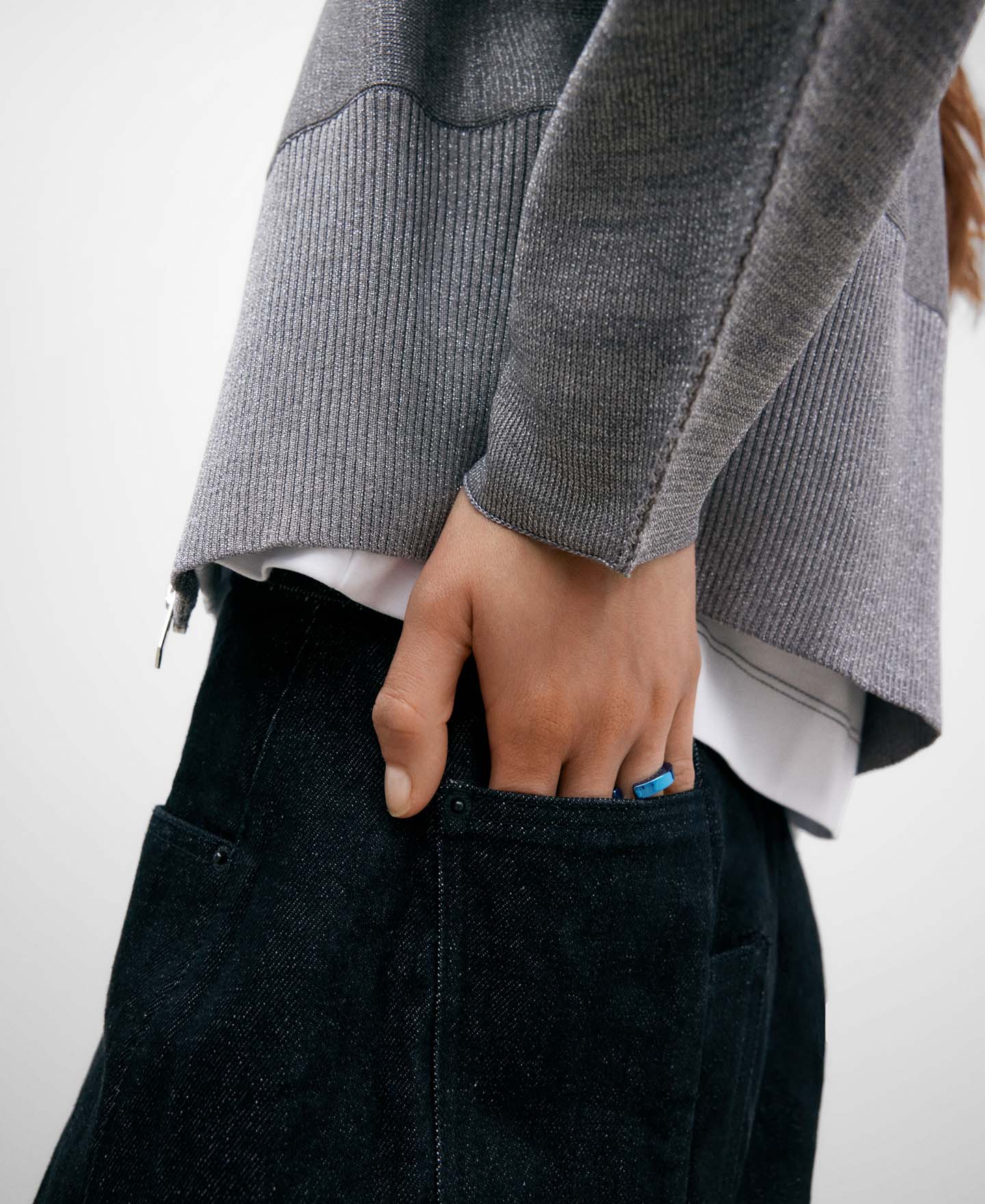 Description: Introducing our exquisite Silver Women's Knitted Bomber Jacket by Adolfo Dominguez. This stunning grey bomber jacket is crafted with the utmost attention to detail. Made from high-quality knitted fabric, it offers a luxurious and comfortable fit. The jacket features a stylish strap collar and long sleeves, adding a touch of sophistication to your ensemble. With its ribbed trims, this bomber jacket effortlessly combines style and functionality. Elevate your wardrobe with this timeless piece from Adolfo Dominguez.