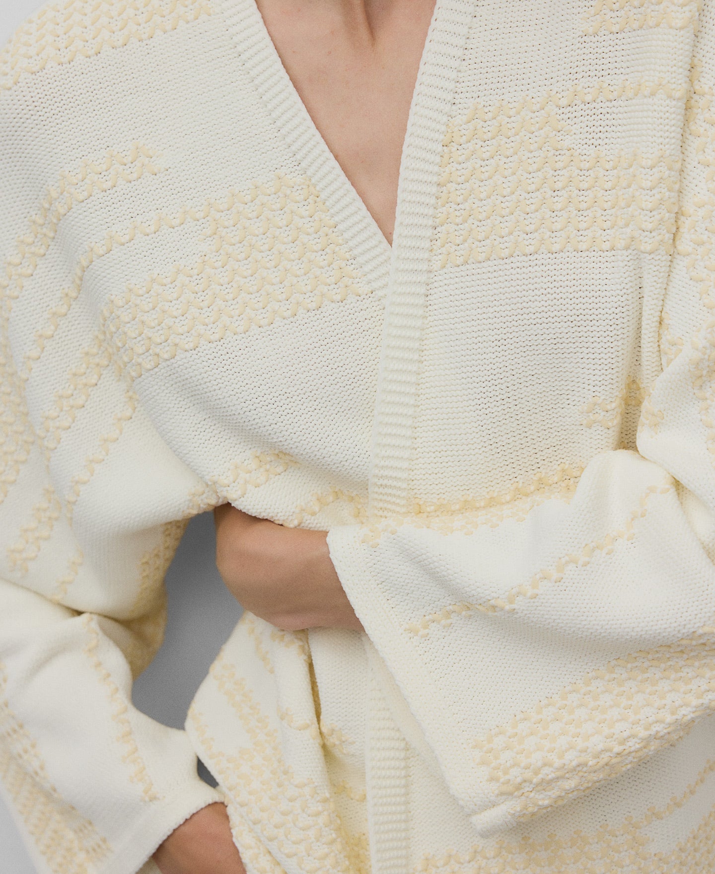 Ecru jacquard jacket woman. Long Japanese sleeve. Spun yarn.