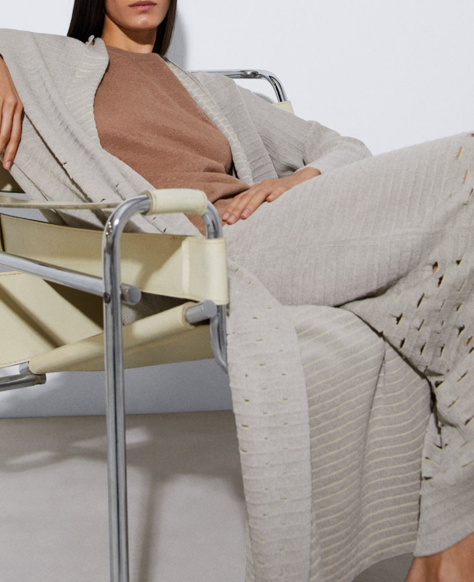 Sand Long Jacket With Openwork Detail