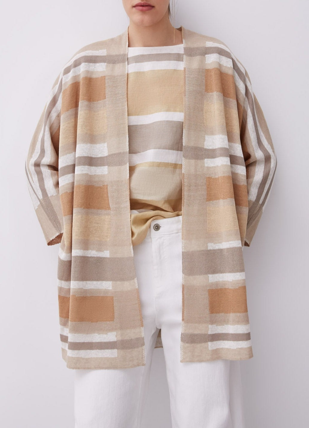 Brown Stripe Linen & Viscose Kimono Jacket