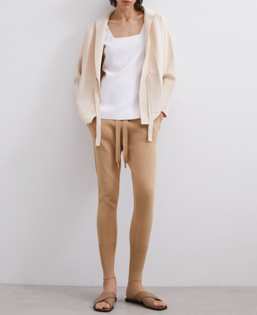 Geometric game. Top in viscose rubber knit with a square neckline that elongates the neck and shows off the collarbones. The rectilinear geometry of the neckline breaks up the rounded drape of the top. Straight cut, side slits and logo label. Perfect with skirts, jeans and suits.Viscose