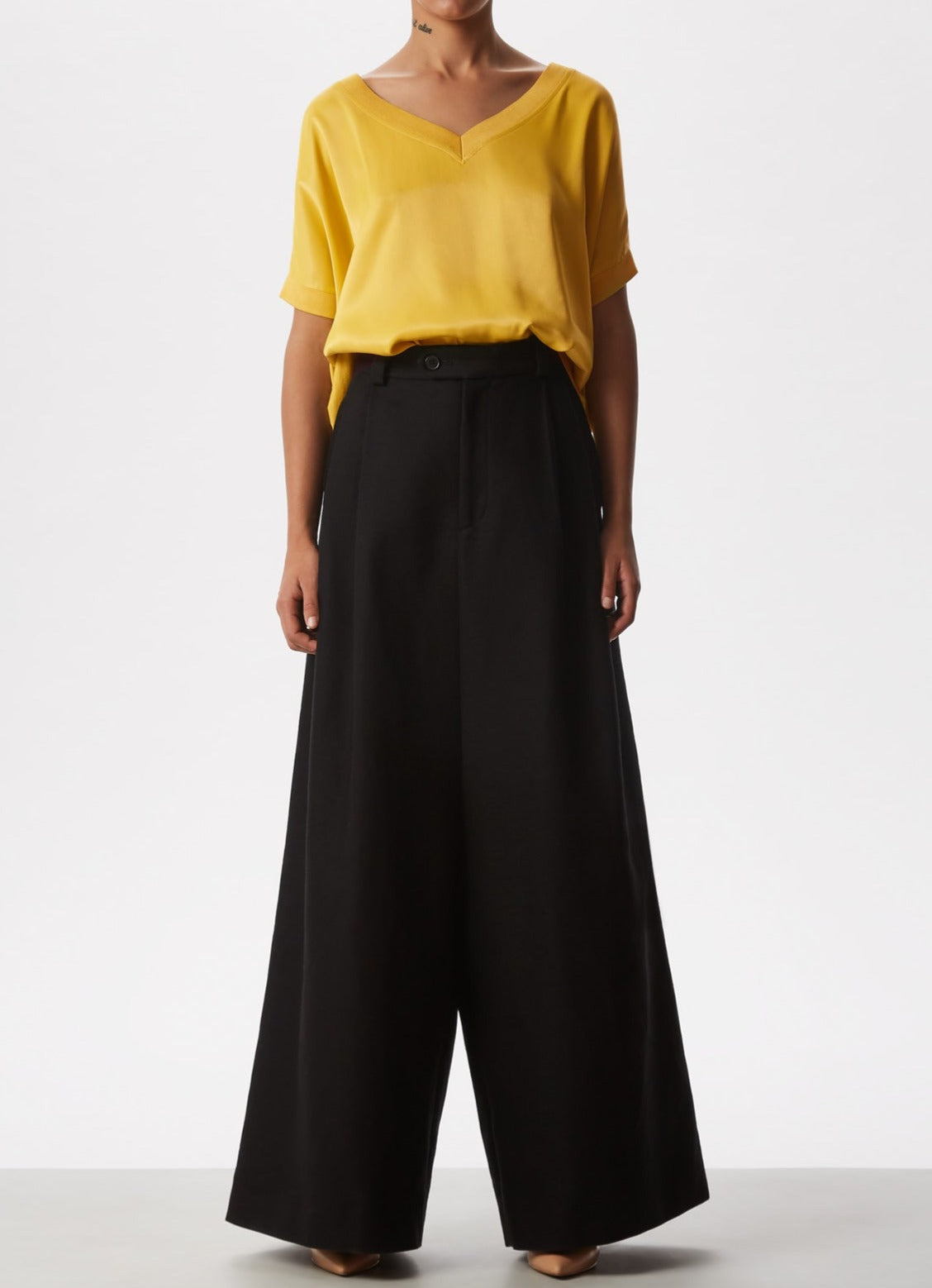 Effortless yet graceful. This oversize sweater features our short cape sleeve, v-neckline and a fine knit back.
