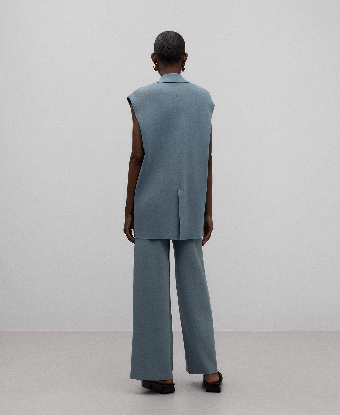Double-breasted vest woman. Armhole sleeve. Lapel. Button closure. Pockets on the front.