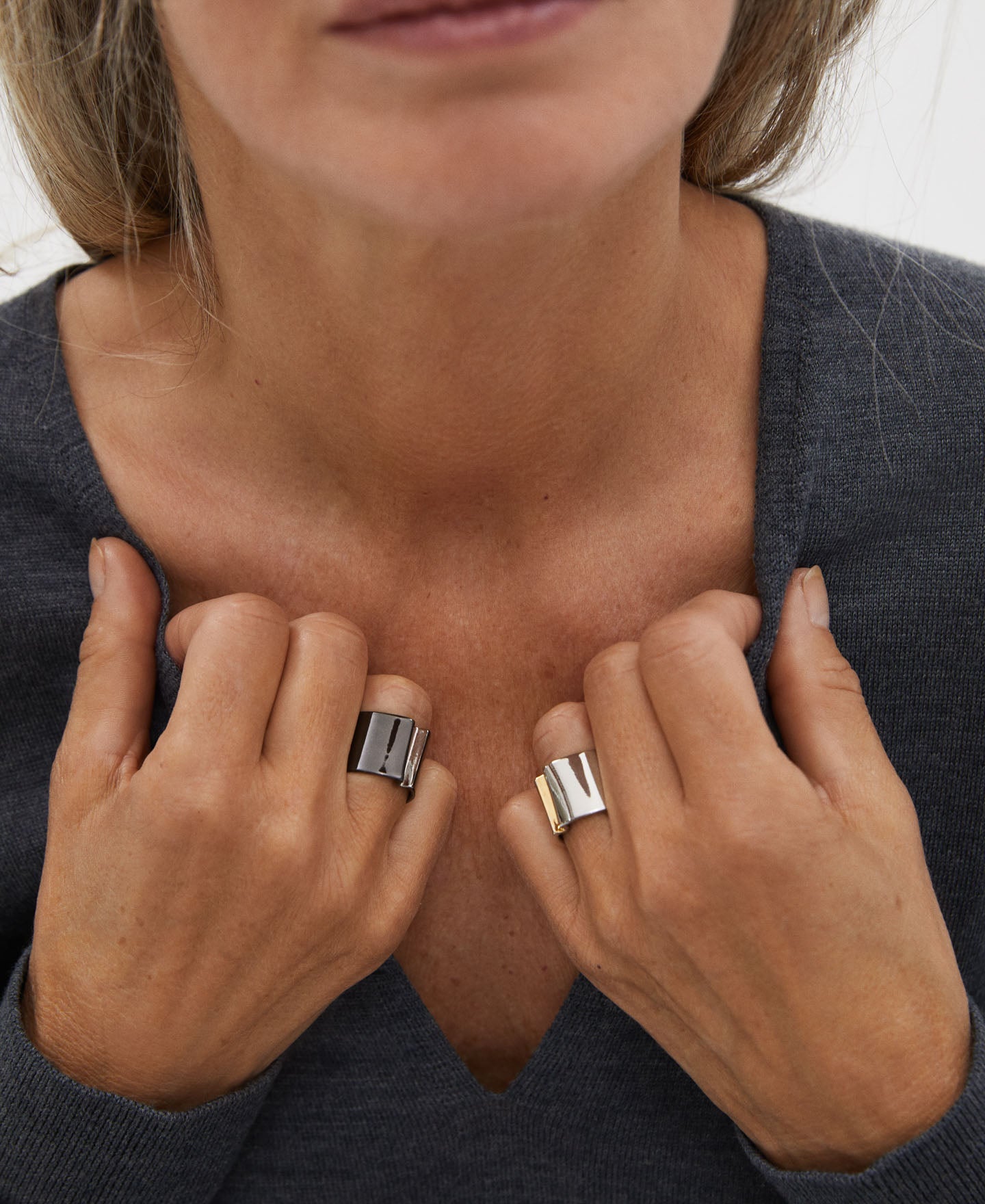 The crack is part of the El Vacío collection. In this ring we unite it with kitsugui, a centuries-old Japanese art that celebrates the beauty of imperfection. Dress your fingers with it to always remember the beauty of scars.