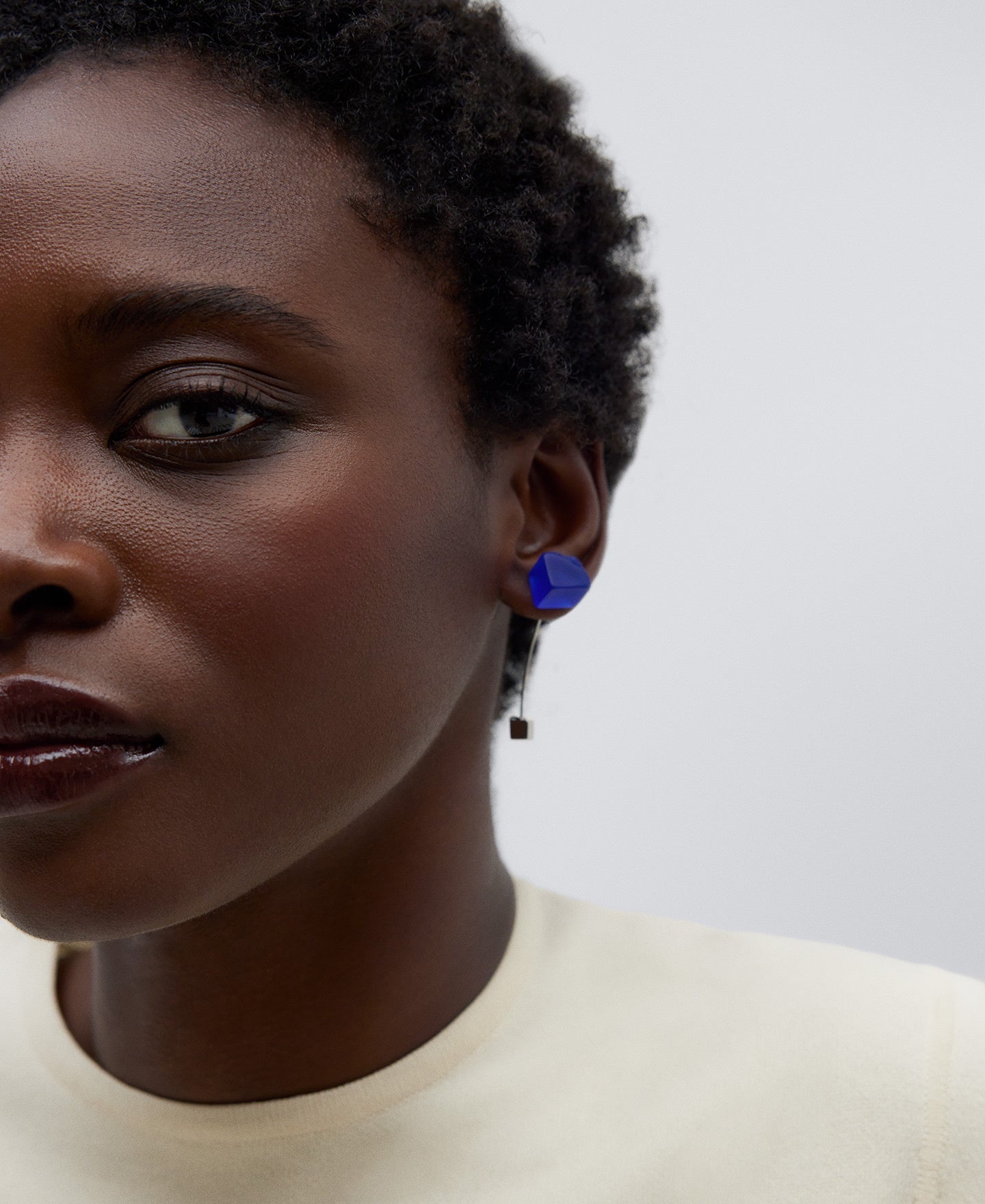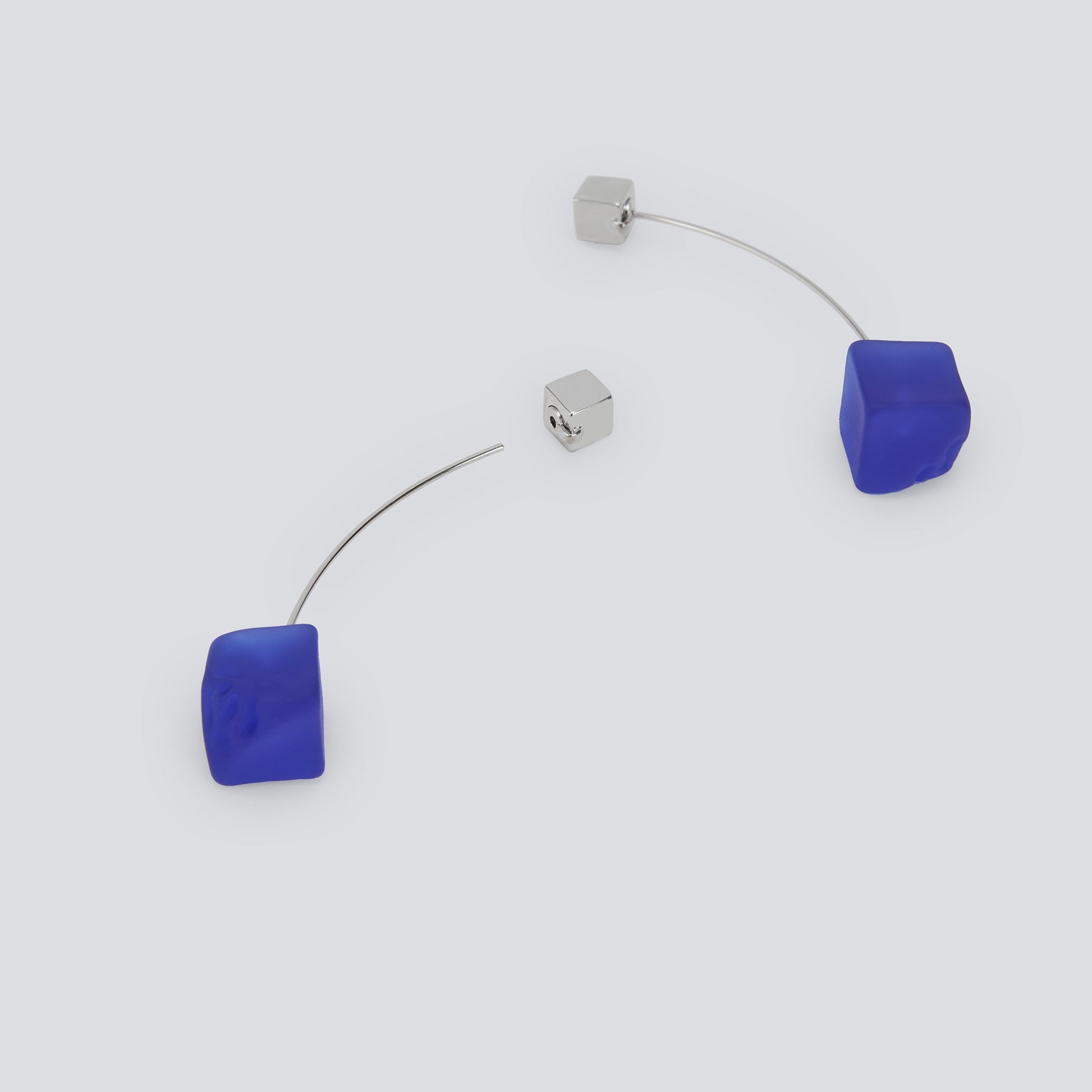 Resin And Brass Earrings Woman. Metal Bar With A Dice At The Tip.