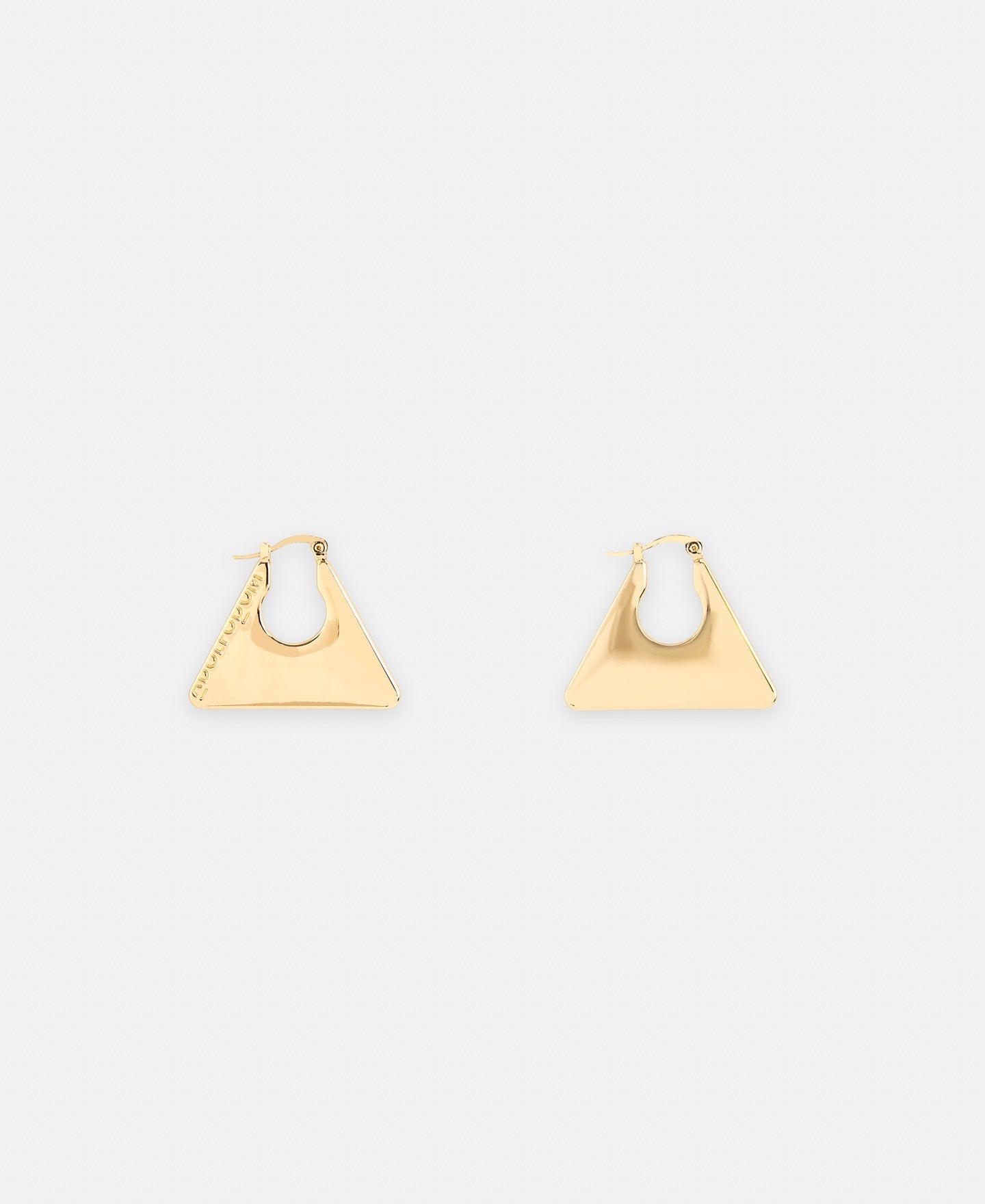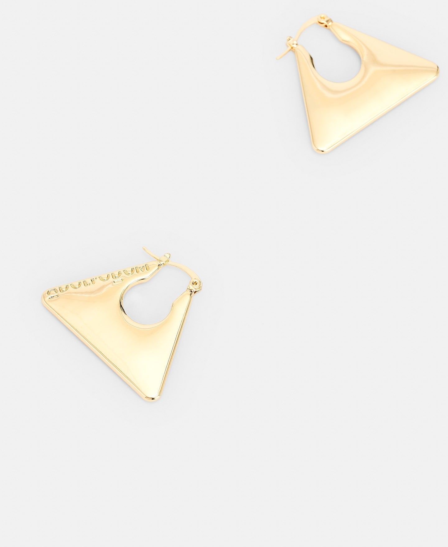 Triangular earrings with logo engraved in 100% zinc.100% Zinc Triangular Shape Logo Engraved