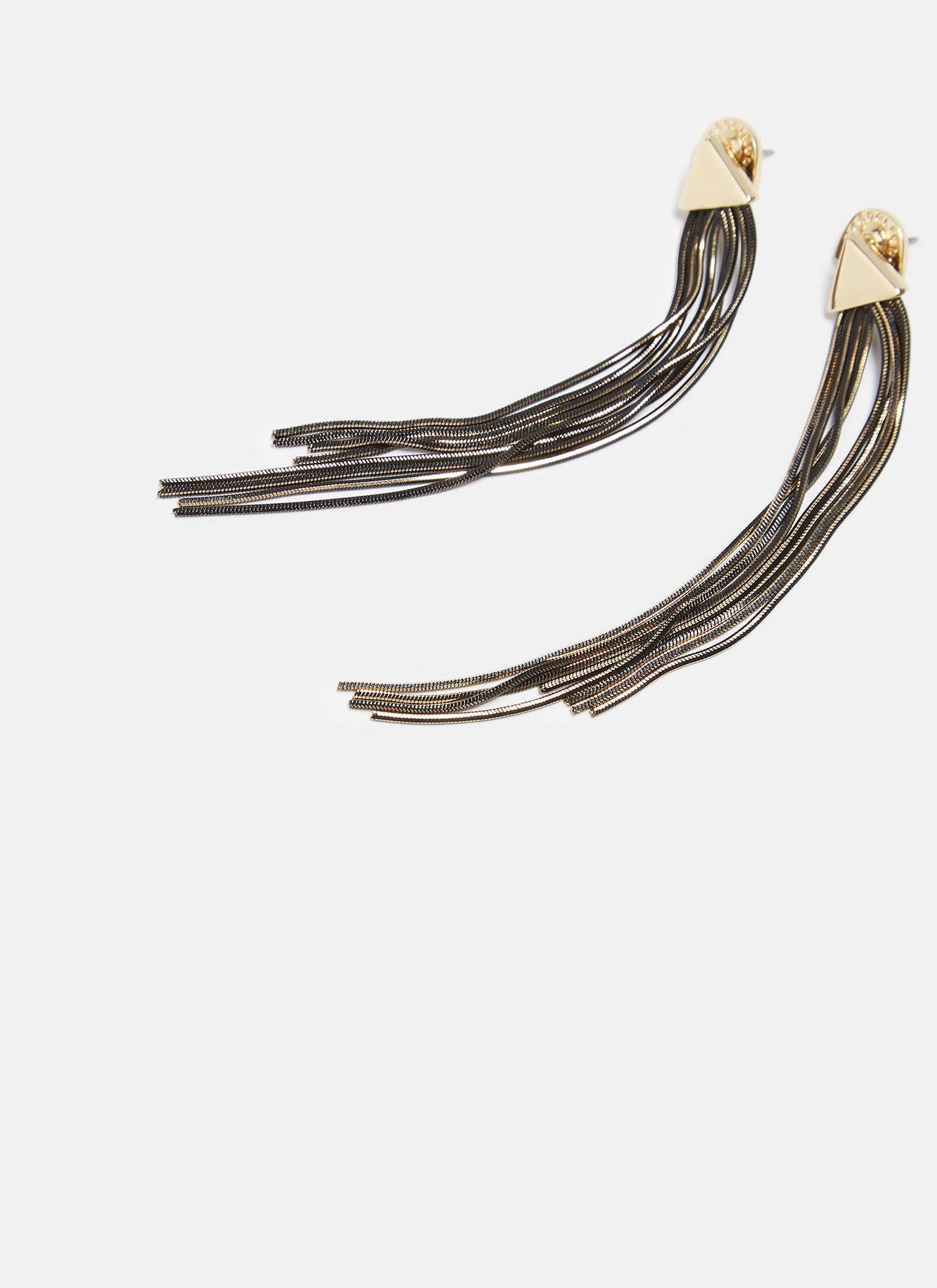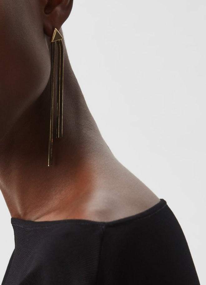 Crafted from bicolour metal, these multiline earrings feature a triangular shape and post back.
