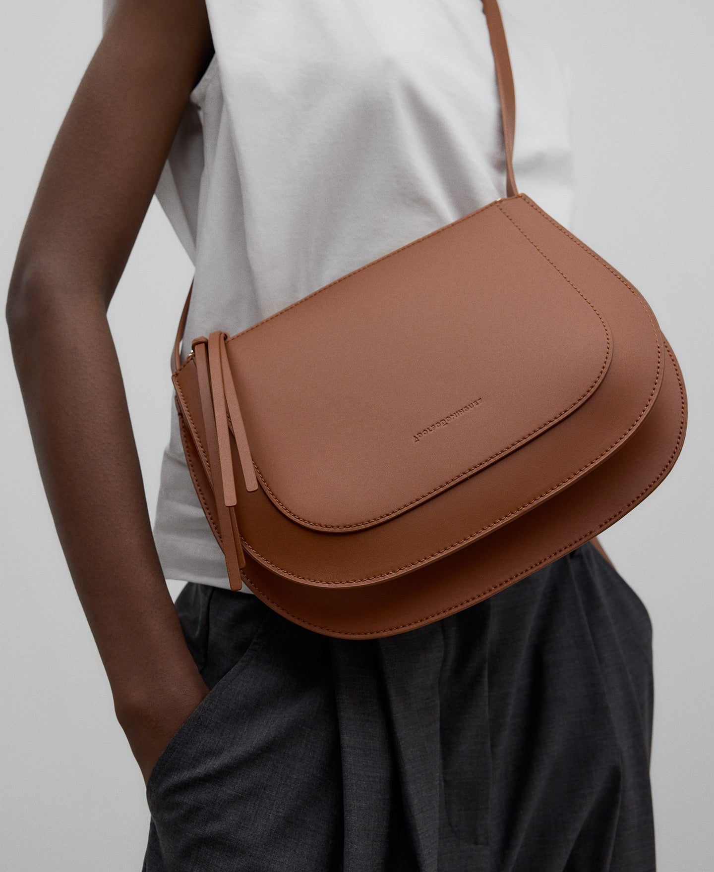 Responsible leather small crossbody woman. One compartment. Zipper closure. Inner pocket with zipper closure. Adjustable long strap with buckle. Engraved logo.