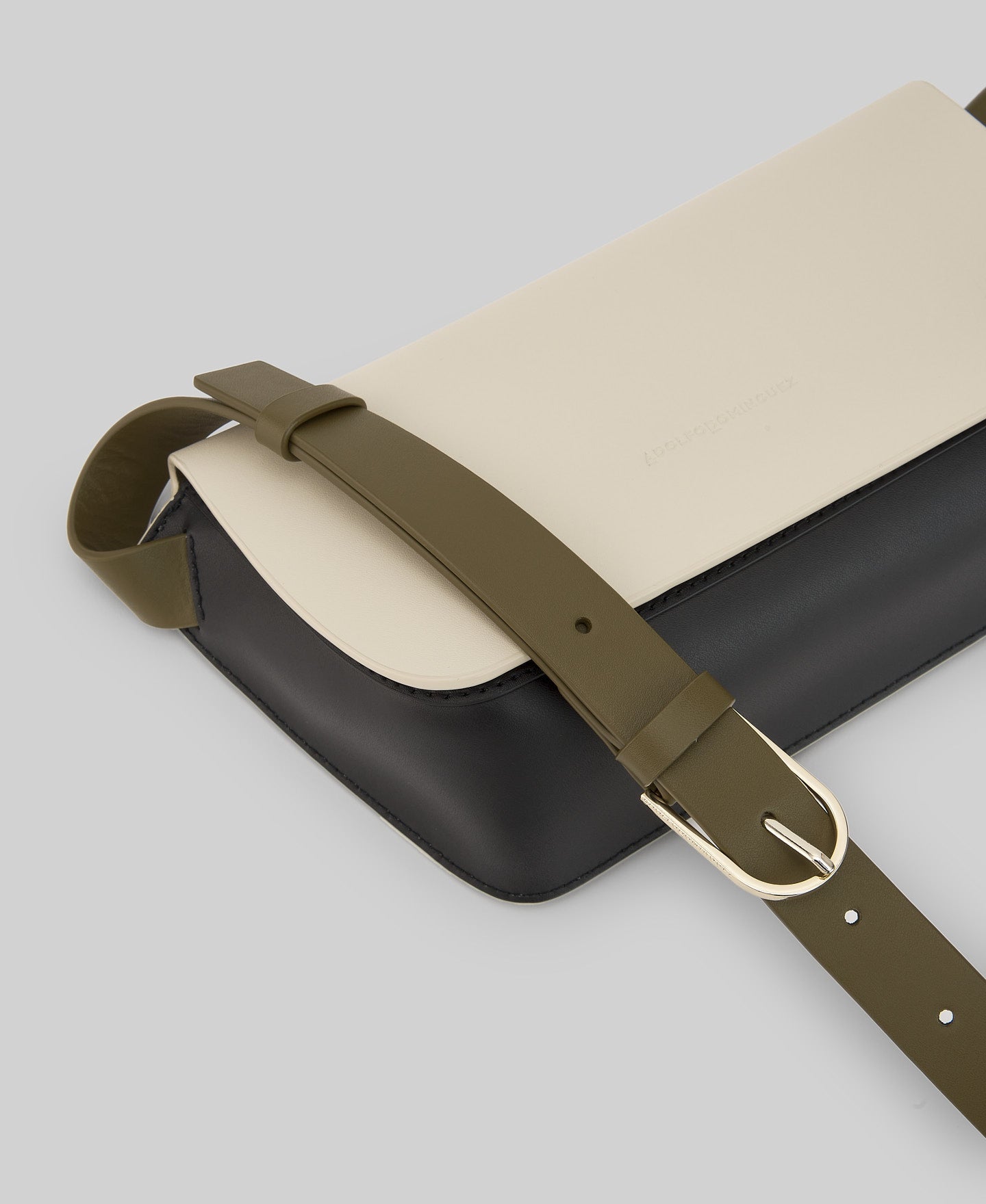 Tricolor responsible leather bag woman. One compartment. Flap magnetic closure. Inner pocket with zipper closure. Short fixed strap. Lond ajustable strap. Engraved logo.
