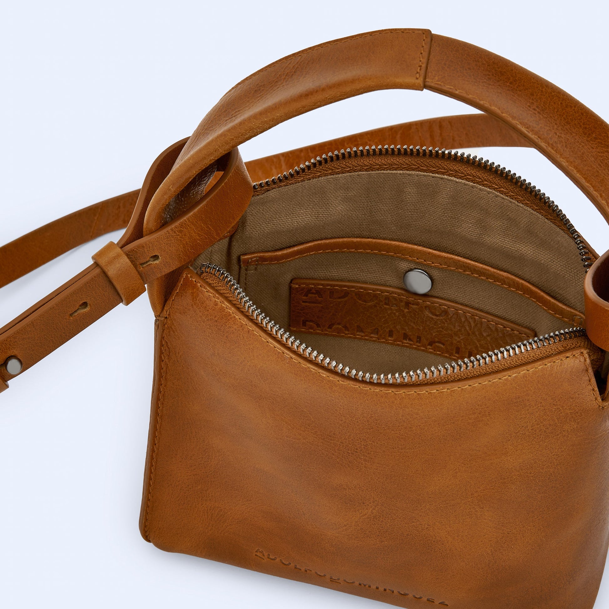 Introducing our mini shoulder bag, perfect for carrying your essentials in style. This bag features one spacious compartment with a convenient zip fastening, ensuring your belongings stay secure. It also includes a snap fastener pocket for easy access to smaller items. The bag is designed with both a short handle and a long adjustable handle, allowing you to wear it in multiple ways. To add a touch of luxury, our engraved logotype is featured on the bag.