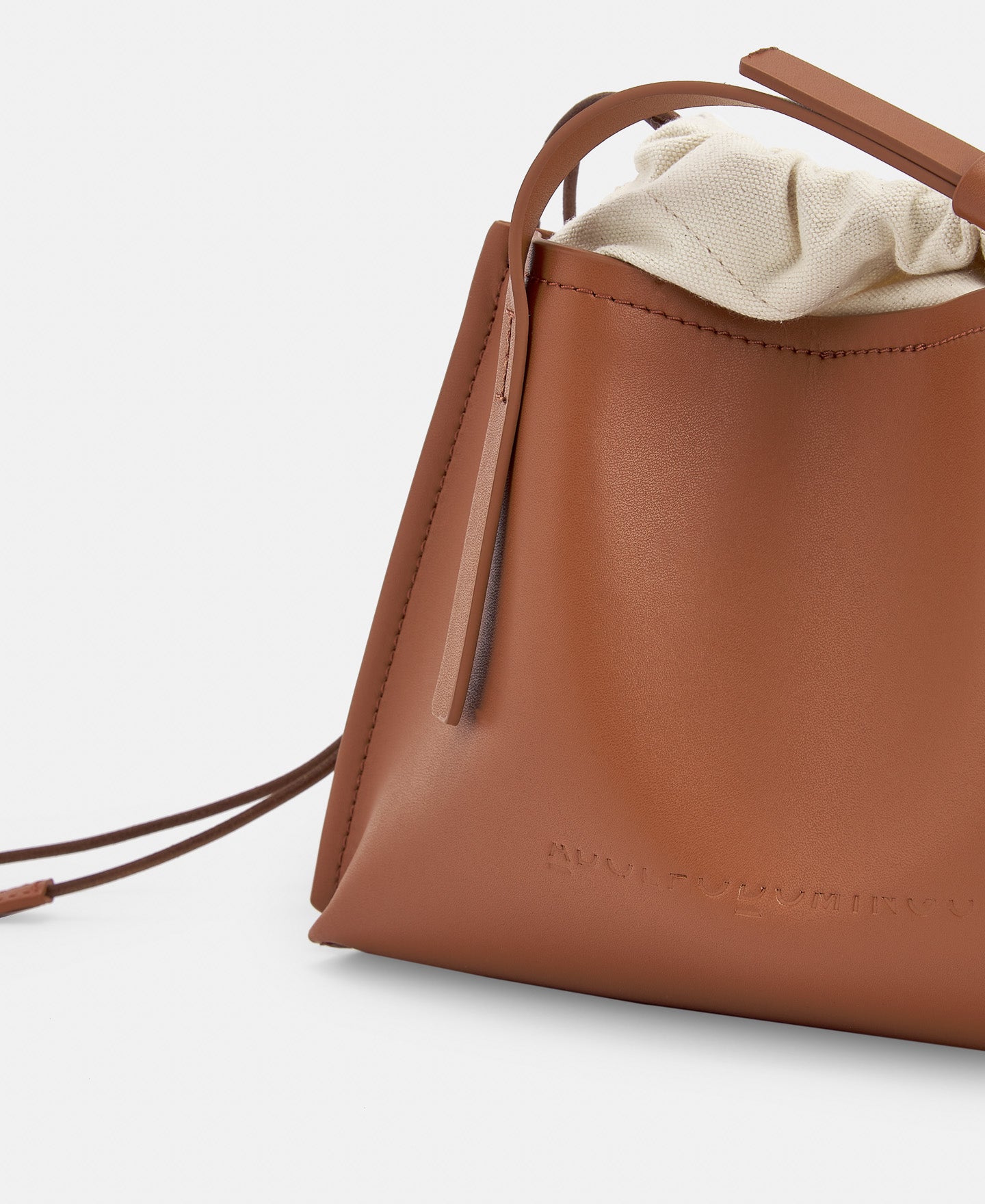 Rectangular shoulder bag in 100% leather. Inner lining in 100% organic cotton. Adjustable long handle, embossed logo.