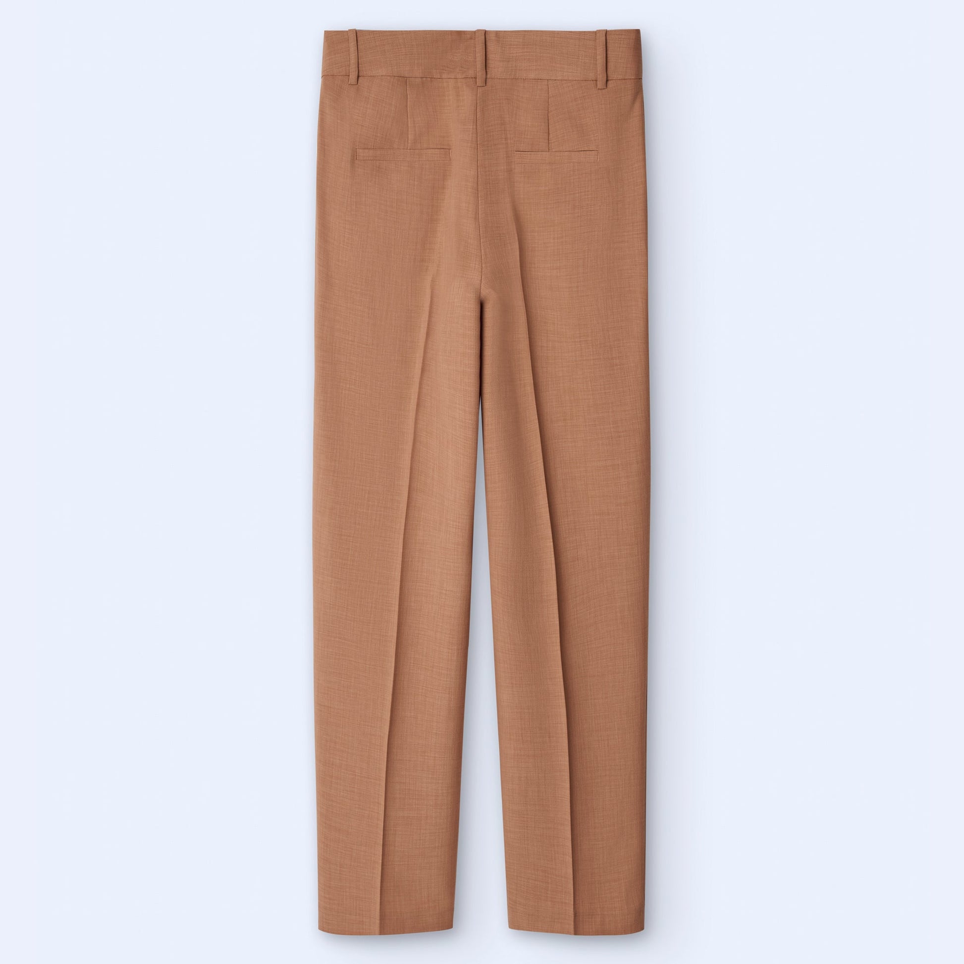 Straight fit trousers with a sleek and sophisticated design. These trousers feature belt loops and a hook-and-eye and zip fastening for a secure and comfortable fit. They also have a side pocket, front dart, and back dart for added style and functionality. The ankle length and straight hem give these trousers a modern and trendy look.