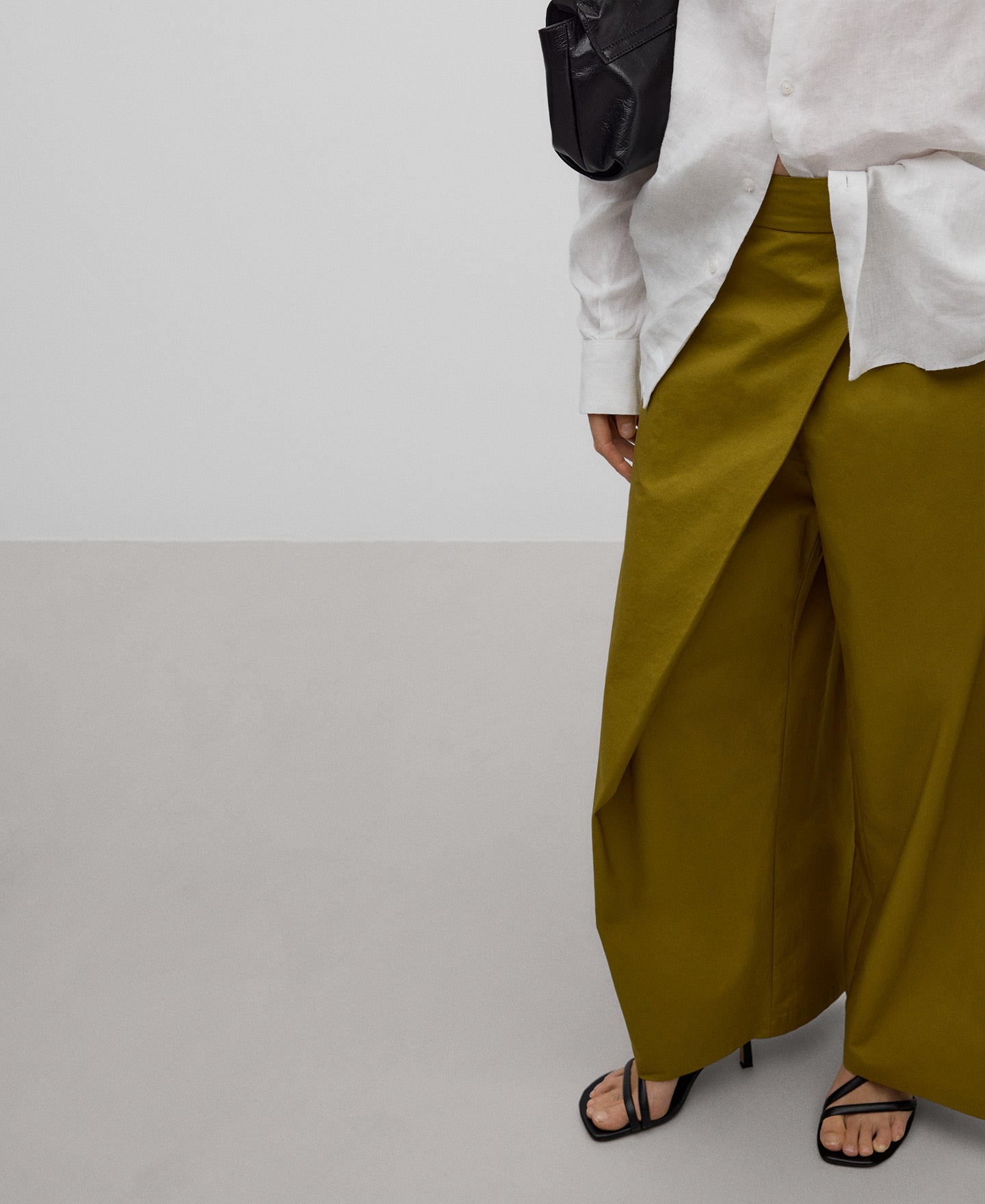 Cotton cross-front trousers woman. Elastic waistband at the back. Pockets at the back. Straight leg.
