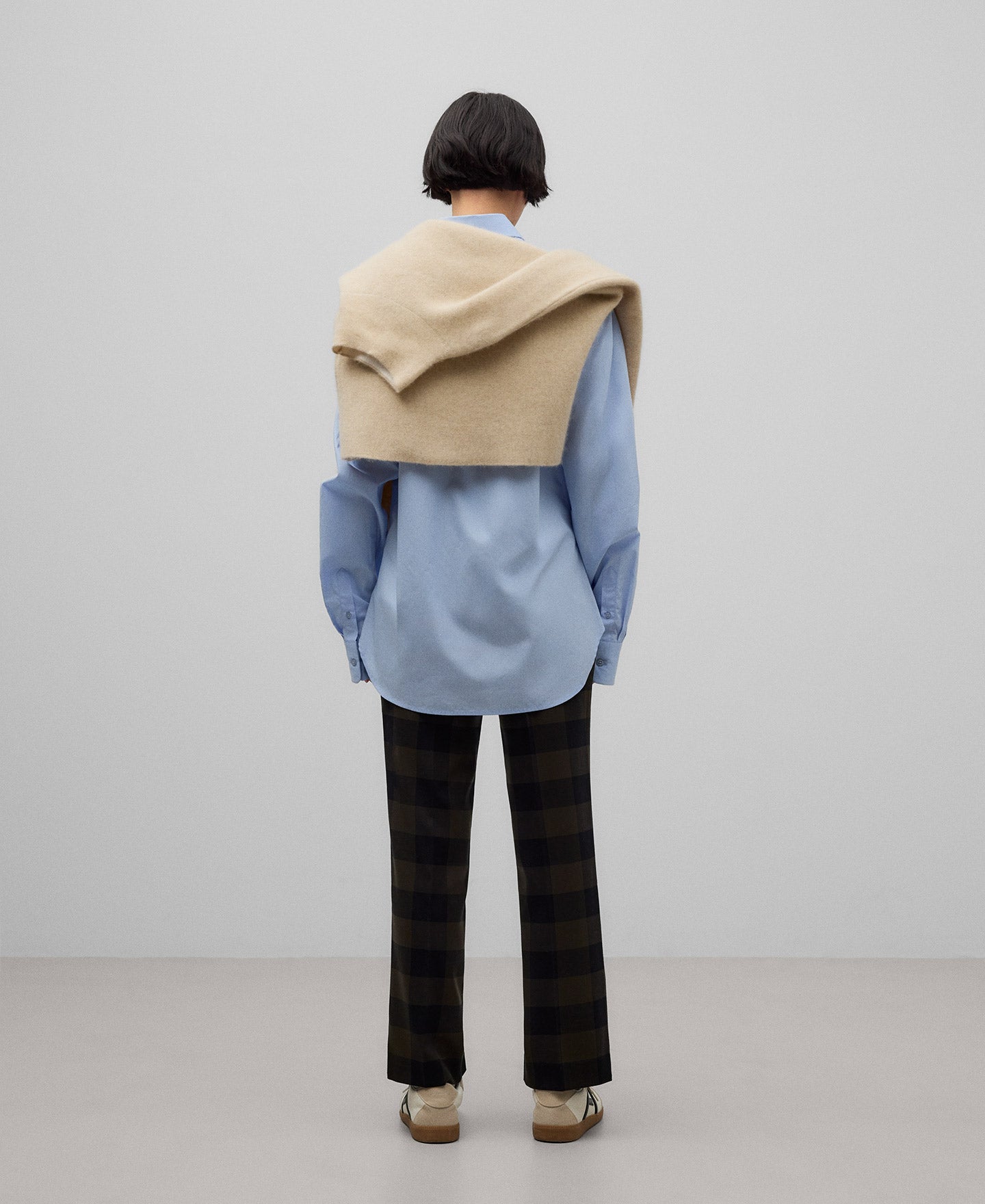 Recycled polyester checkered trousers woman. Waistband. Piped pockets on the back. Front seam on the leg.