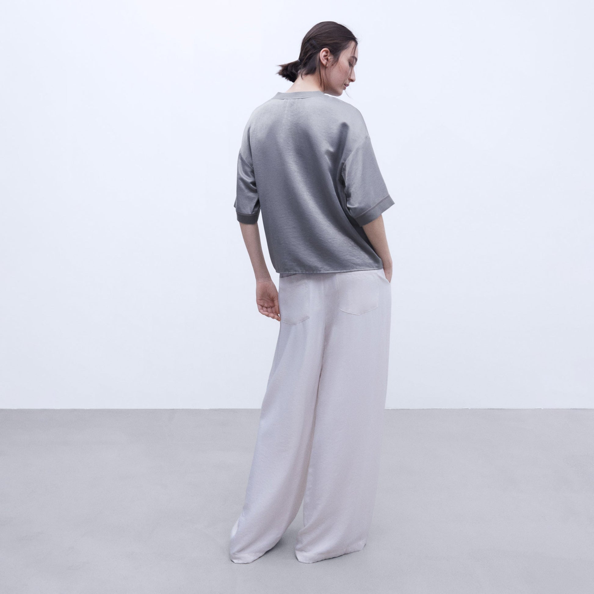 Dropped short sleeve T-shirt with ribbed trims and a straight hem. This stylish and comfortable T-shirt is perfect for any casual occasion. It features a relaxed fit and a modern design that will elevate your everyday look.