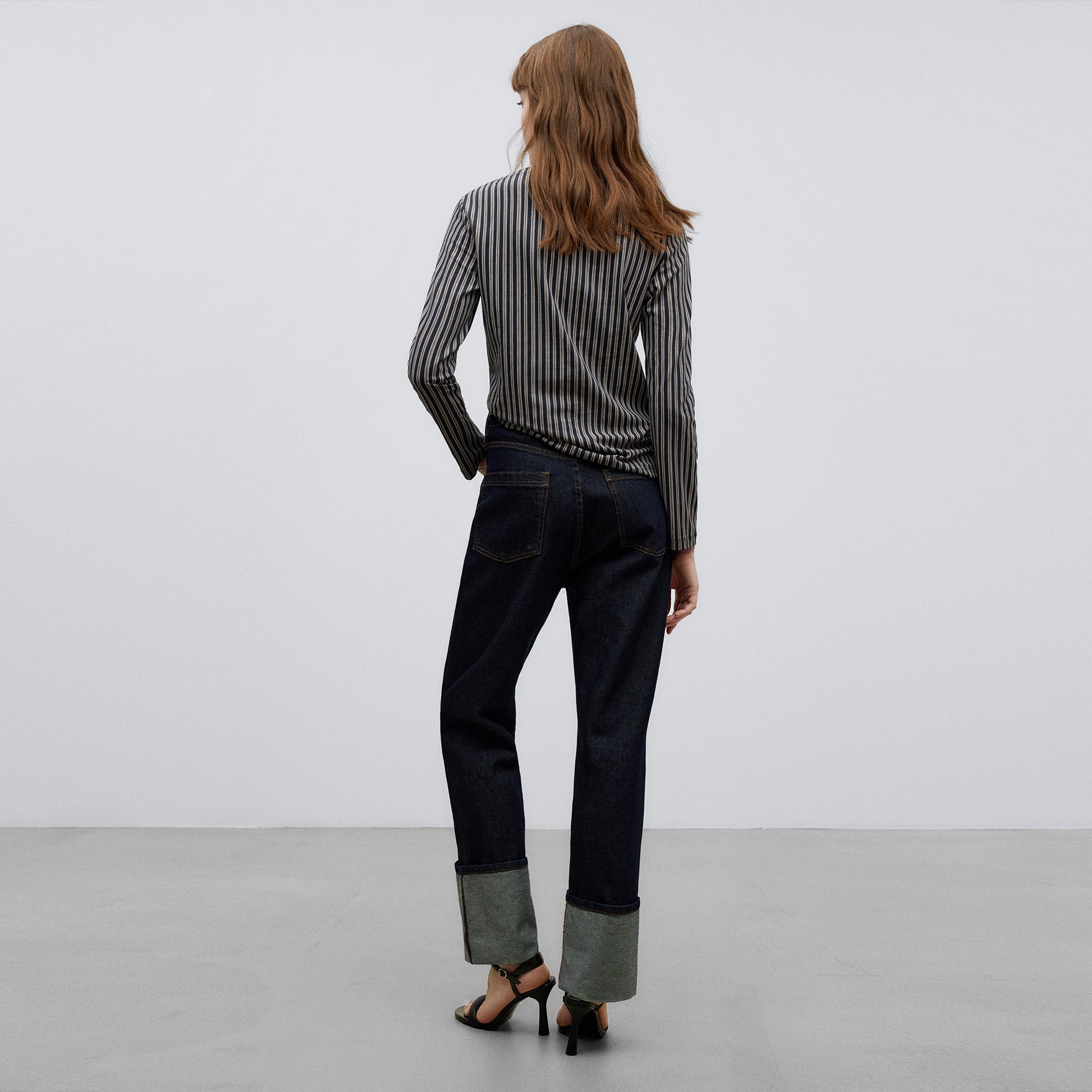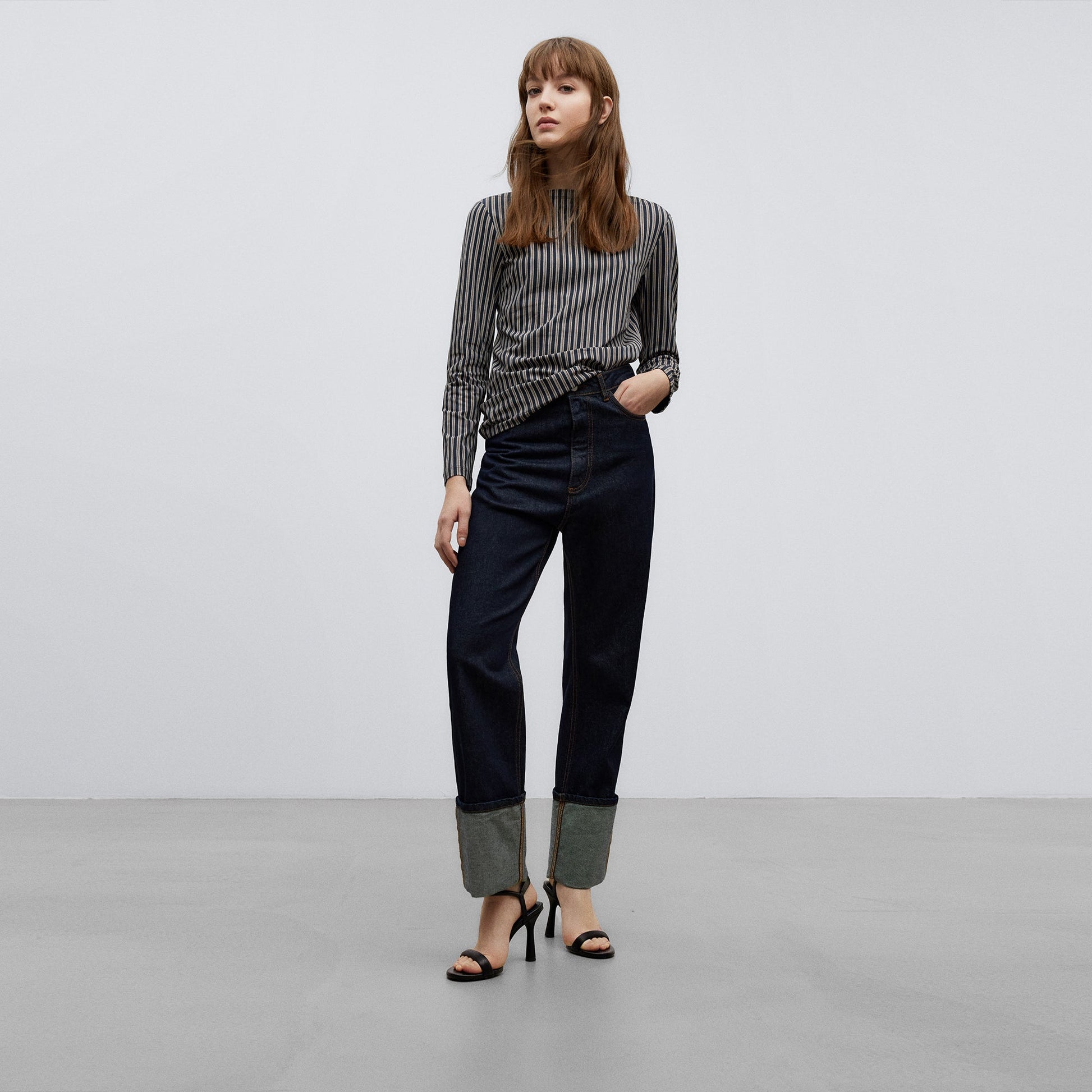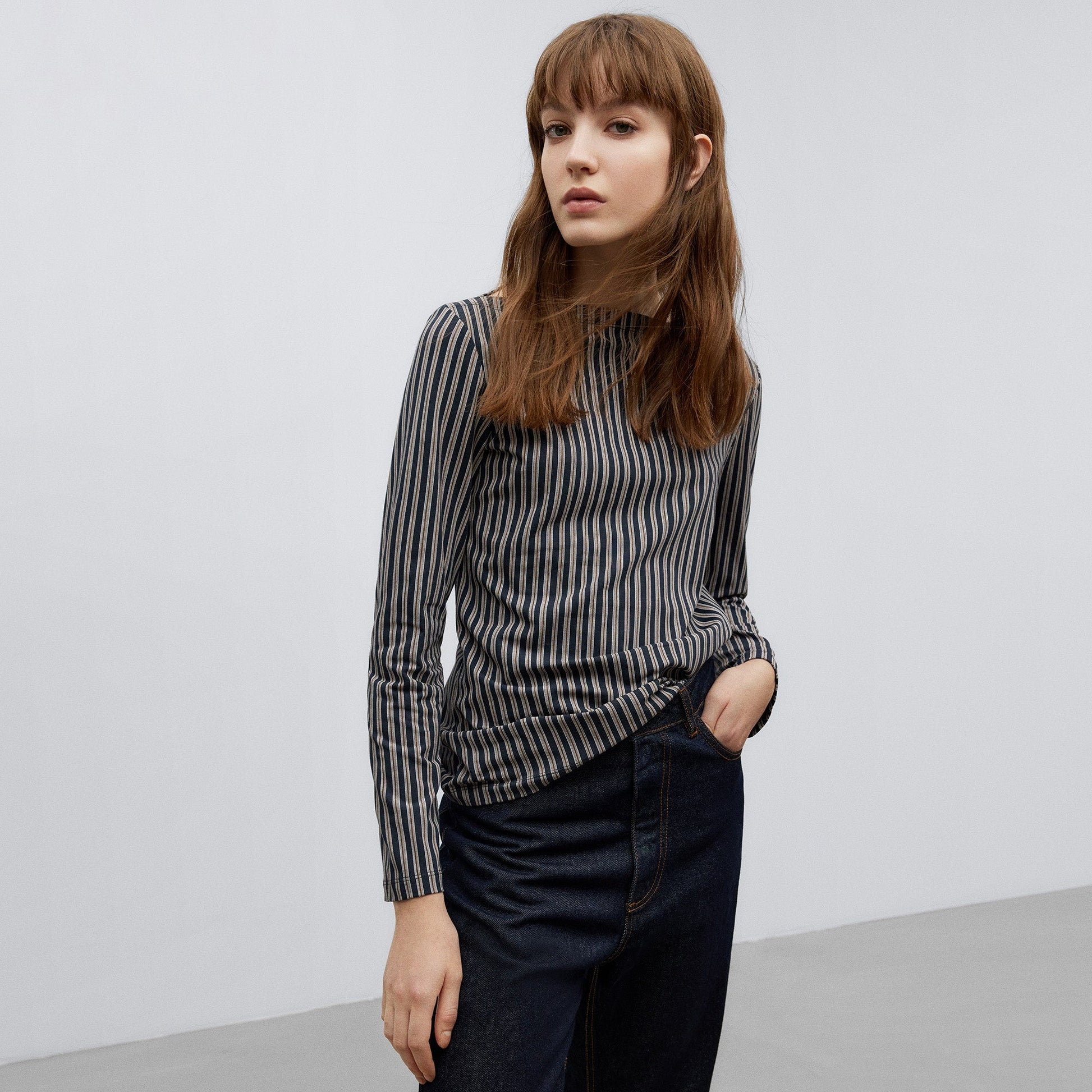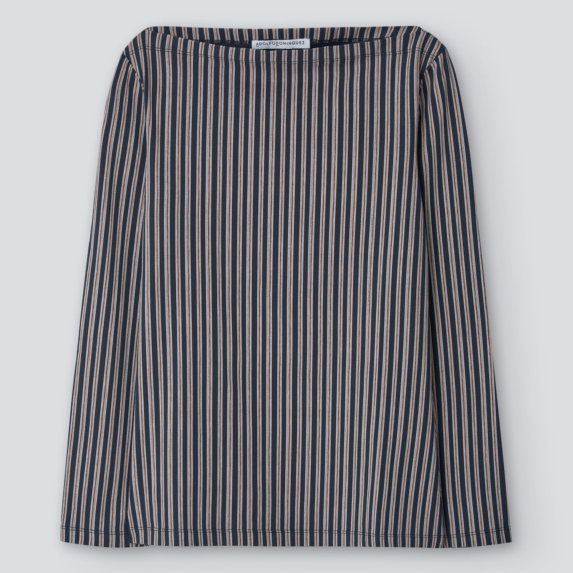 Striped T-Shirt Woman. Semi-Fitted Line. Long Sleeve. Bateau Collar.